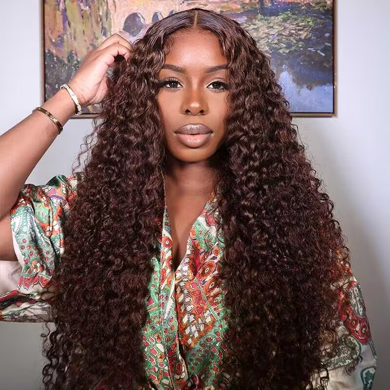 250% Density Chocolate Brown 13×6 Lace Deep Wave Wig Premium Super Double Drawn Wig