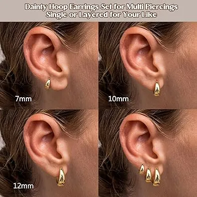 3Pairs Gold Hoop Earrings Set for Women Chunky Gold Silver Hoop Earrings 14K Gold Filled Hypoallergenic Small Huggie Hoop Earrings Tiny Gold Trendy Thick Hoop Earrings Stacks for Multiple Piercing