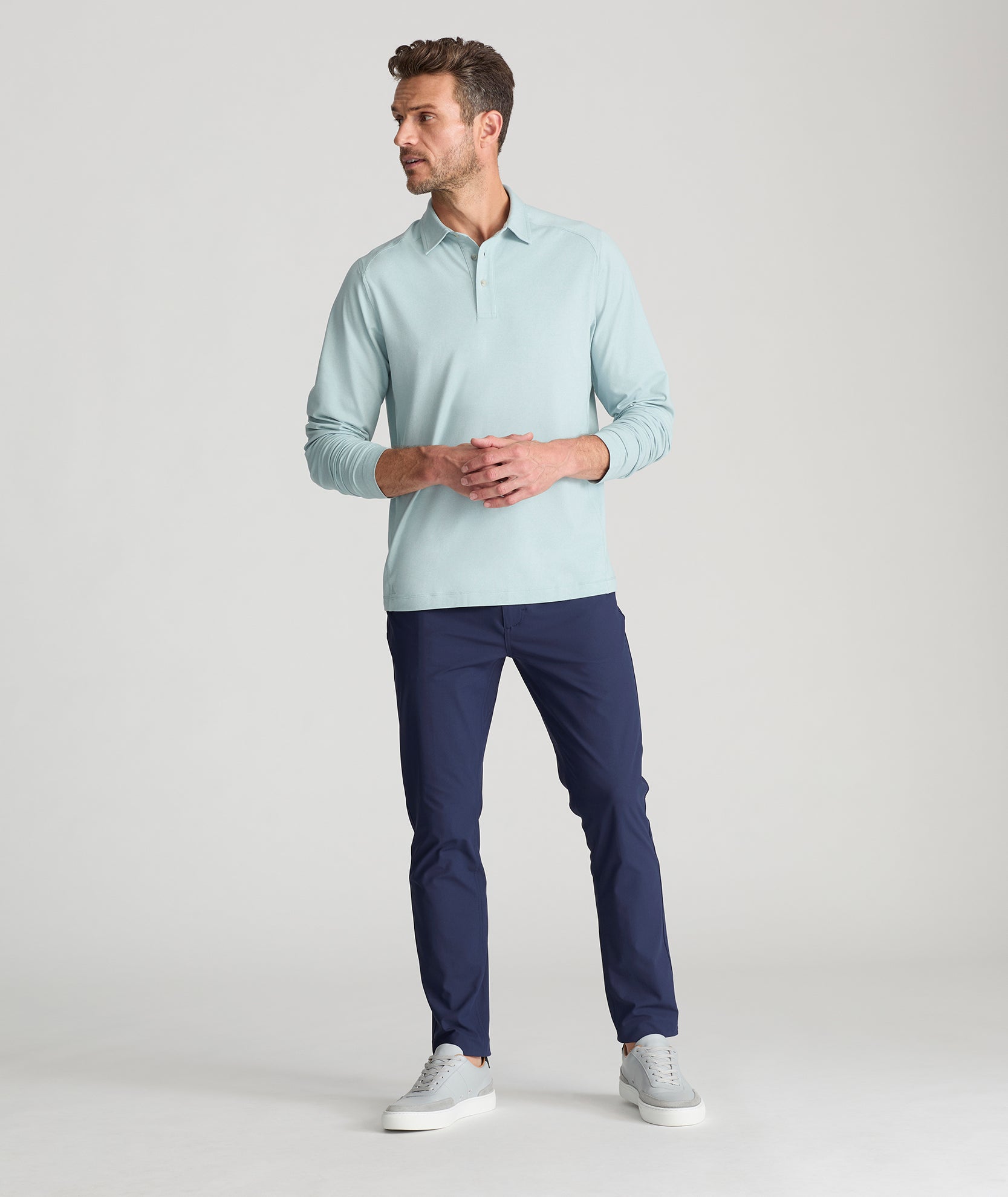 Make every day feel like Saturday with these incredible new tech pants. You’ll love the comfortable feel of their supersoft, moisture-wicking fabric—perfect for your next adventure. We designed it with a modern, extra slim fit—called Slim Taper Fit—which is more streamlined than our Slim fit. We also gave it lots of stretch and a gusseted crotch for maximum comfort all day long. Plus, there’s no dry cleaning required—just wash, dry, and wear. Pair them with your favorite untucked shirt and a cozy quarter-zip sweater for the ultimate fall outfit.