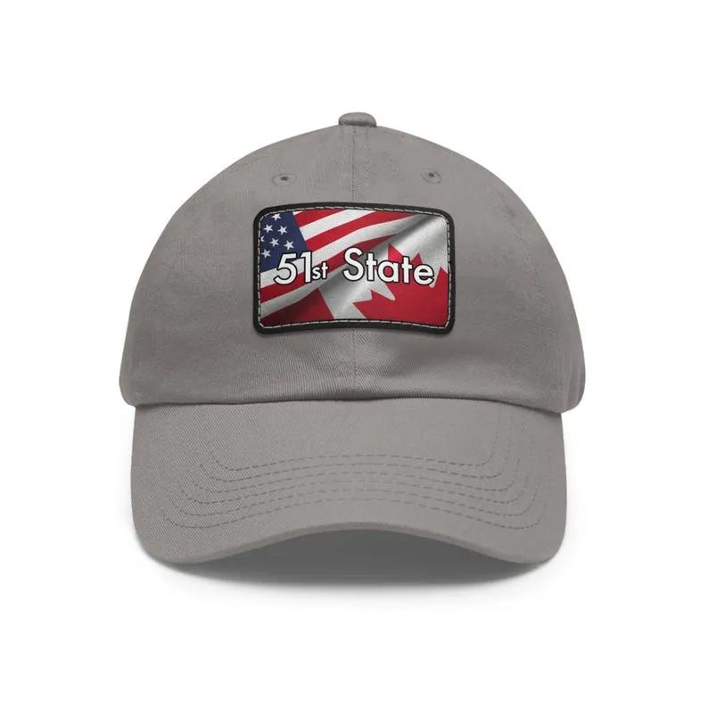 This Dad Hat with a leather patch featuring 'USA and Canada 51st state' design is perfect for those who love unique accessories with a touch of patriotism. The handmade look and vintage buckle closure give off a cool, laid-back vibe, making it a great addition to any casual outfit. Ideal for individuals who enjoy celebrating Independence Day, Memorial Day, or other patriotic holidays.