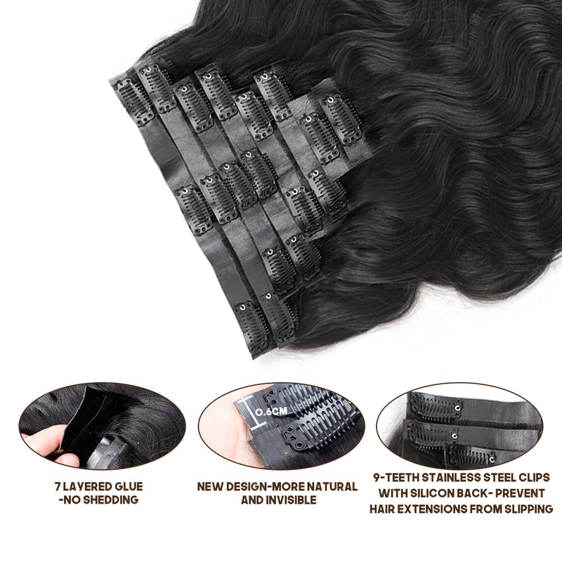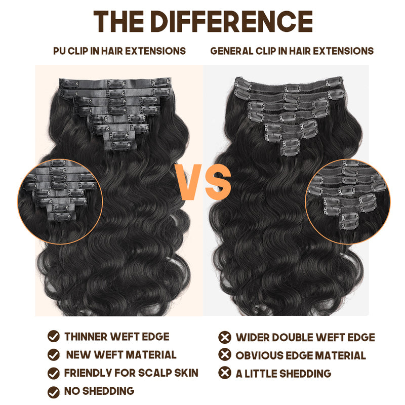 8 Pieces/Set Seamless PU Clip-Ins Body Wave Hair Extensions Clip In Human Hair Extension