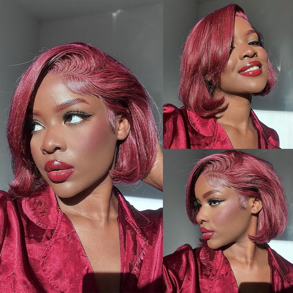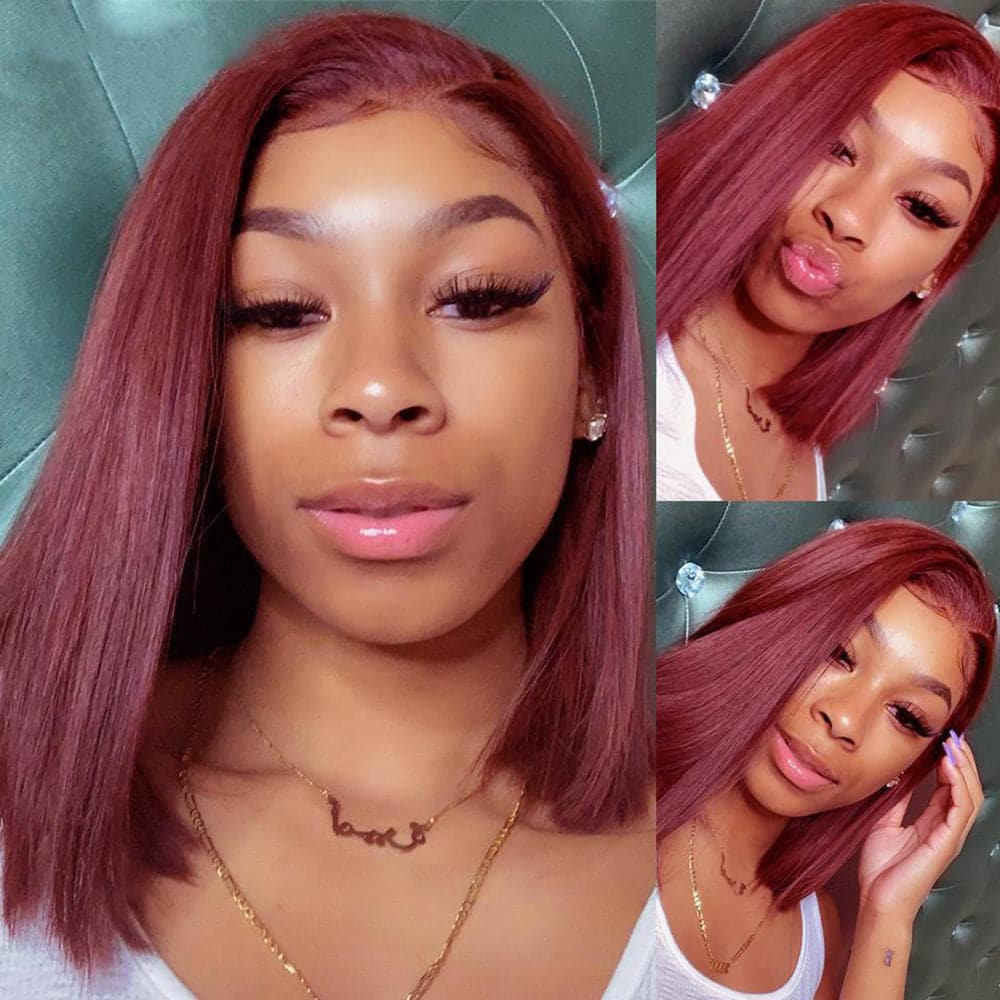 Sterly Burgundy 99J Frontal Wigs Human Hair Straight Short Bob Wigs For Women