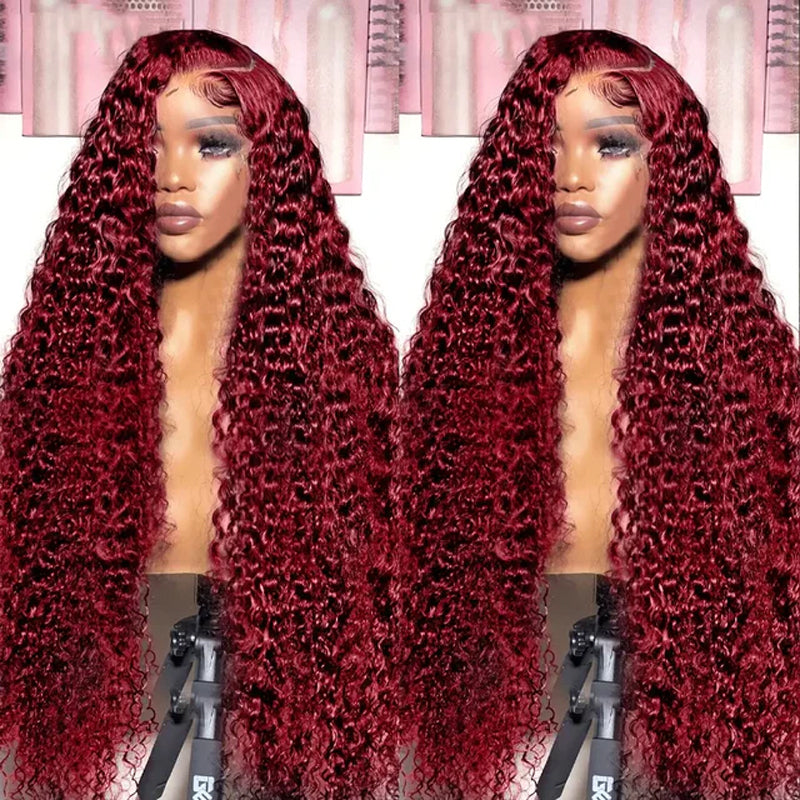 99J Burgundy 13×6 Deep Wave Wig Premium Super Double Drawn Human Hair Wig 250% Density