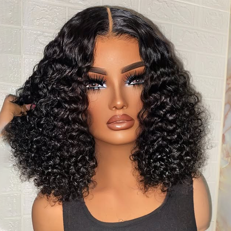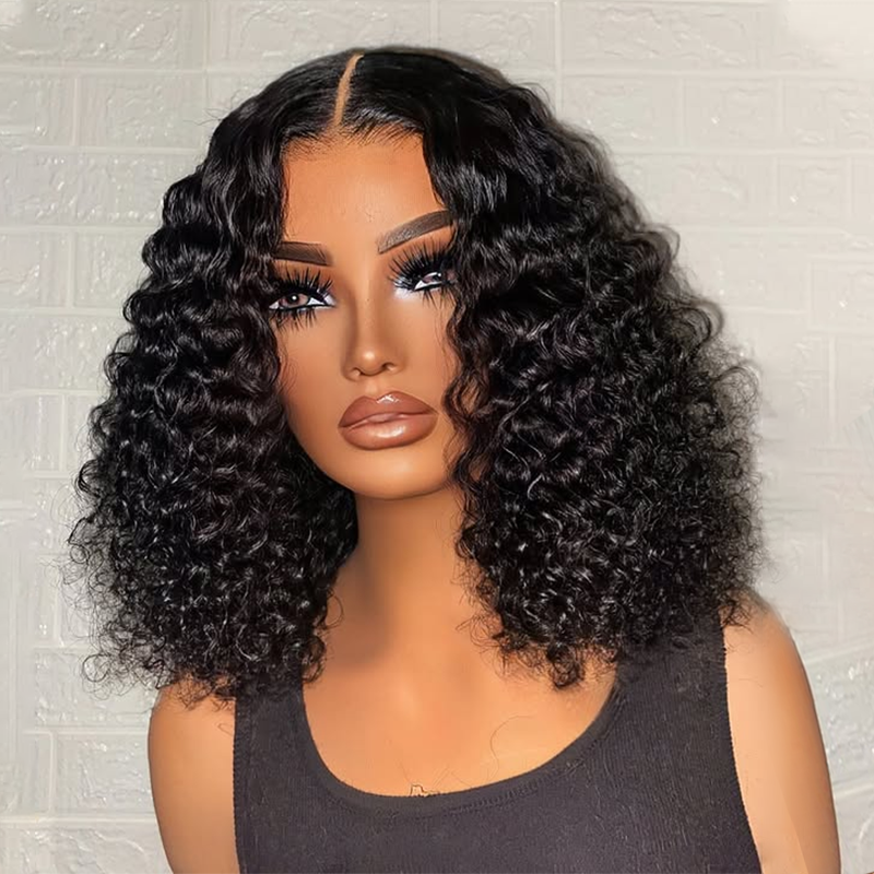 • Affordable #1 Jet Black Human Hair Bob Wigs Deep Wave Bob Wigs