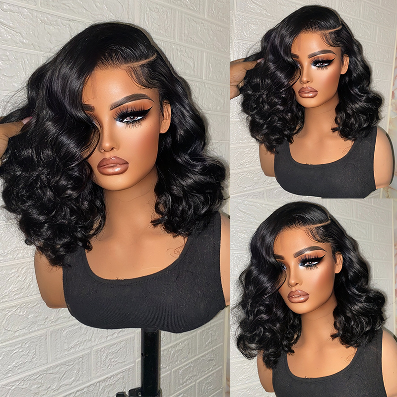 • Affordable #1 Jet Black Human Hair Bob Wigs Loose Body Bob Wigs