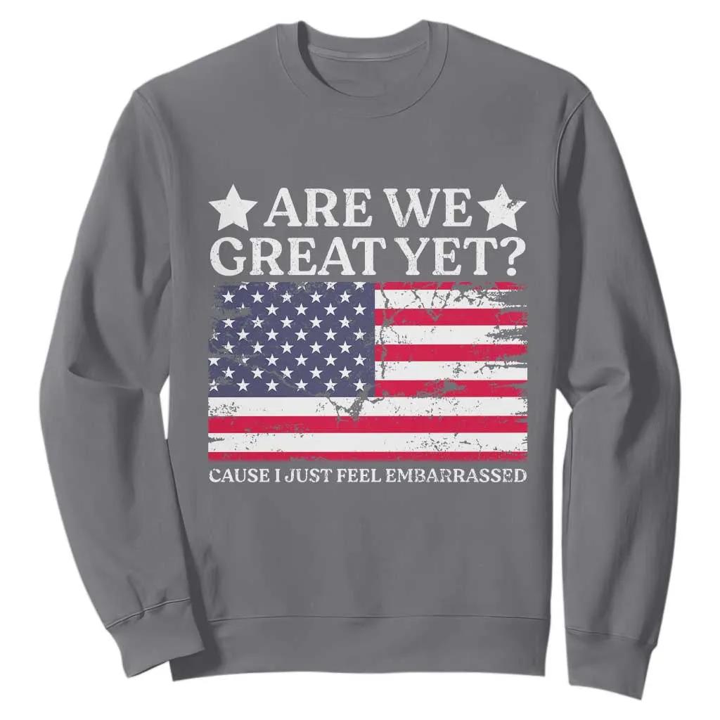 Are We Great Yet Sweatshirt Cause I Just Feel Embarrassed American Flag TS09