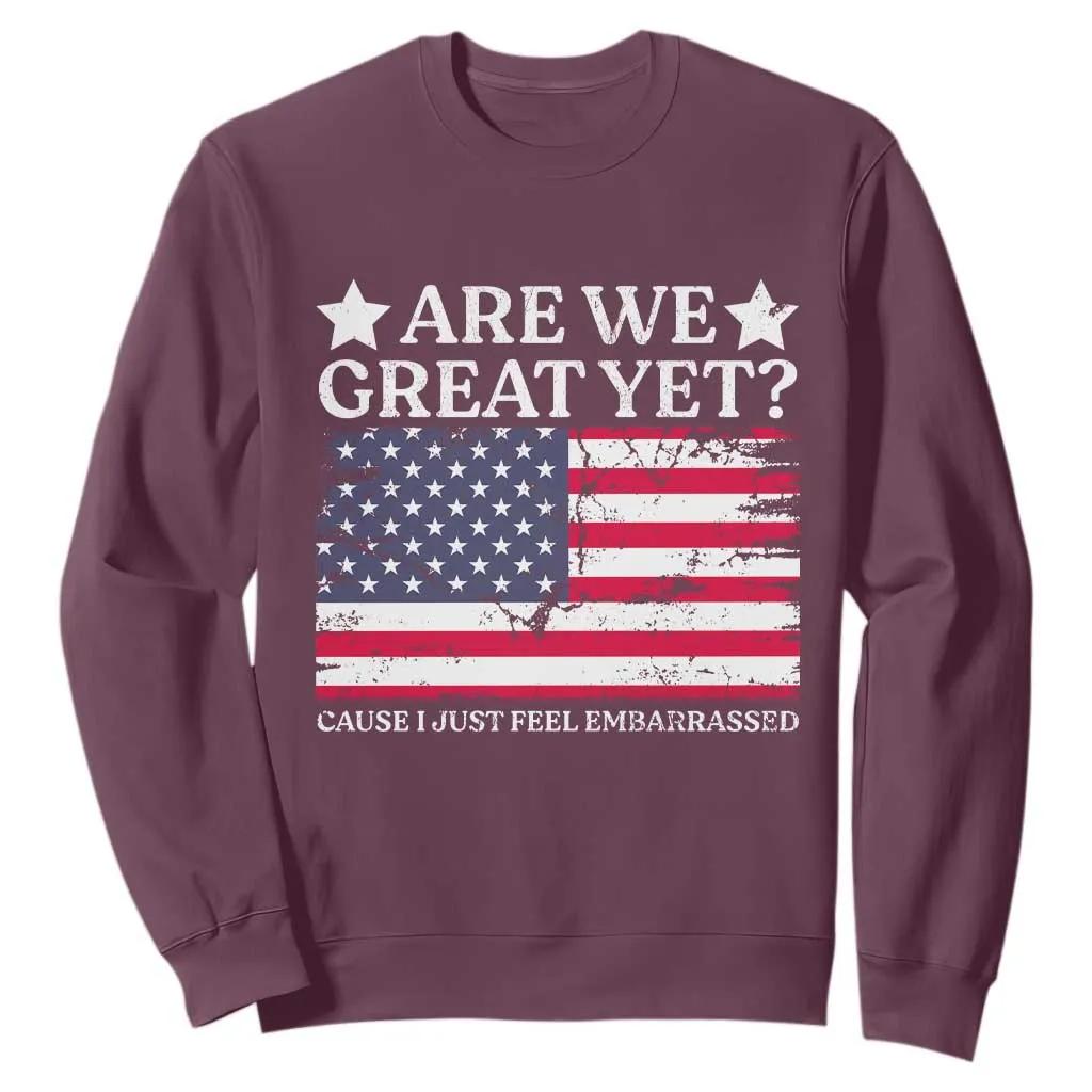 • Are We Great Yet Sweatshirt Cause I Just Feel Embarrassed American Flag TS09