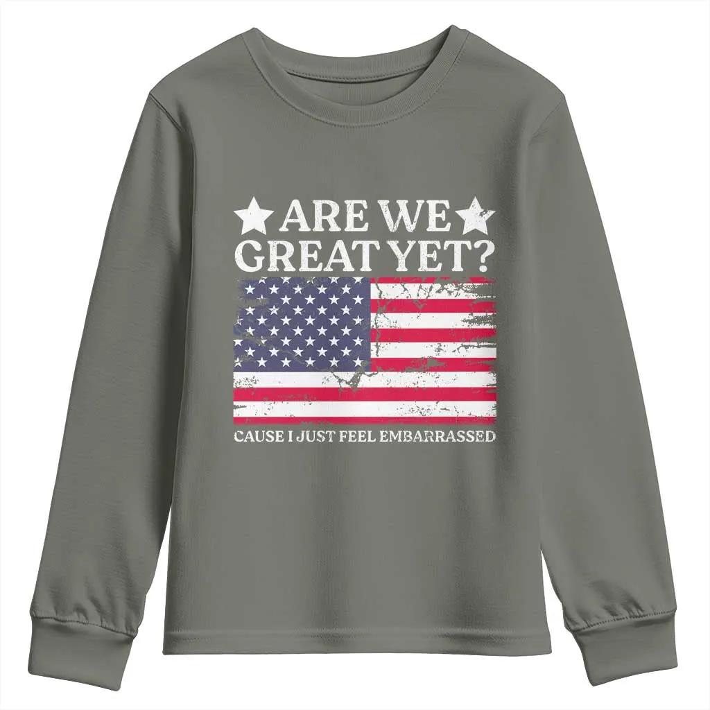Are We Great Yet Youth Sweatshirt Cause I Just Feel Embarrassed American Flag TS09