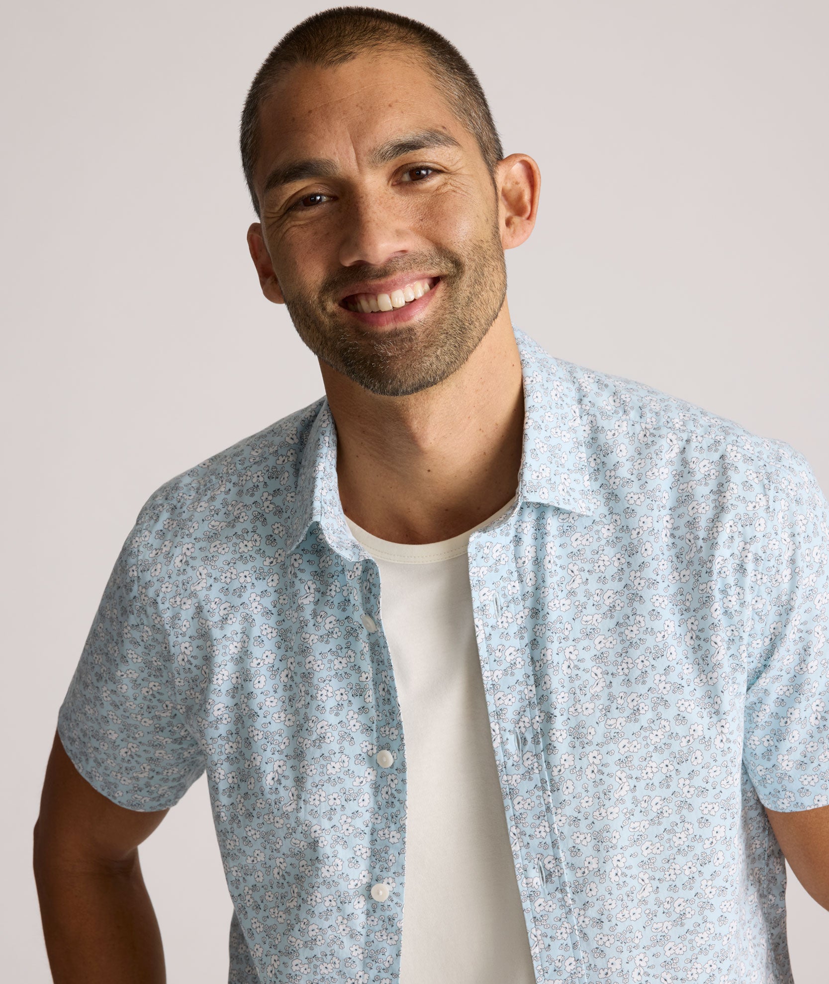 Refresh your vacation look and get ready for warmer days ahead with our latest short-sleeve button-down. It has an extra trick up its sleeve: We made this insanely comfortable style from organic cotton, then added a hint of stretch and an eye-catching print for an extra dose of fun. Even better, it's made in a Fair Trade Certified™ factory to help improve worker lives, protect the environment, and build transparent supply chains. Wear it with our Saturday Tech Pants for an effortless, travel-ready style for this season and beyond.