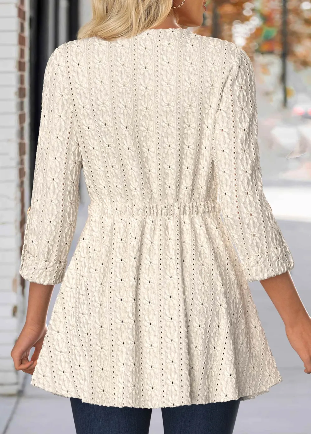 Beige Lace 3/4 Sleeve Round Neck Coat