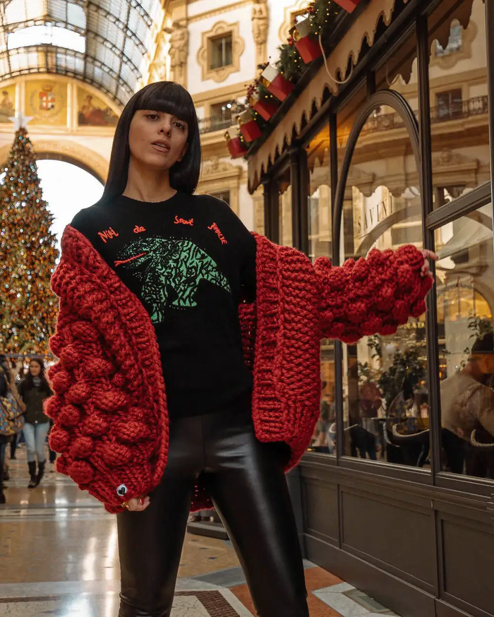Experience the perfect blend of comfort and style. Crafted from premium quality yarn, this piece is luxuriously soft to the touch and offers superior warmth and breathability. The unique design features voluminous, puffy sleeves that add a playful and feminine touch to your outfit, while the relaxed, oversized fit offers comfort and ease of movement.