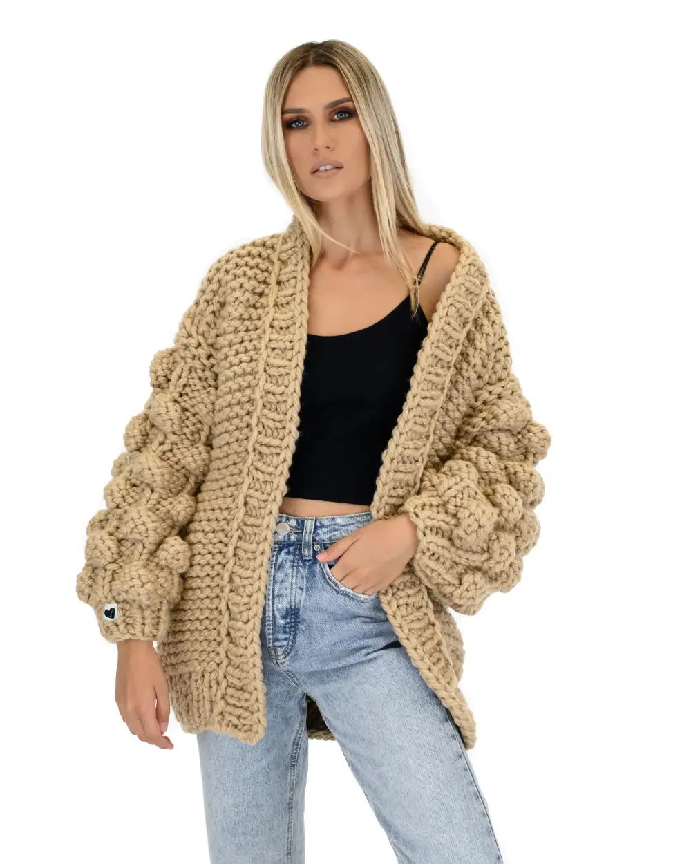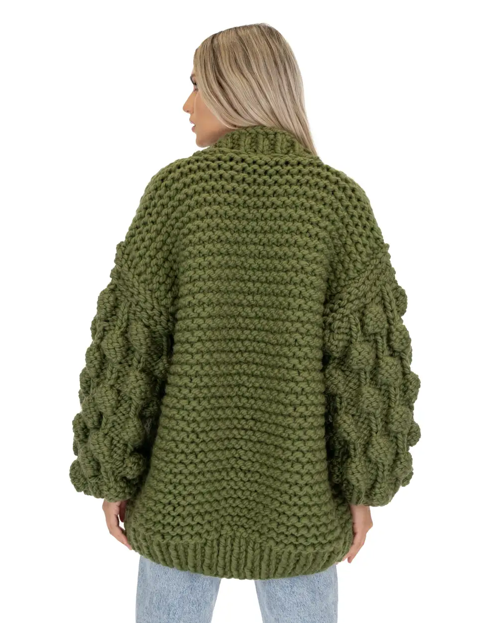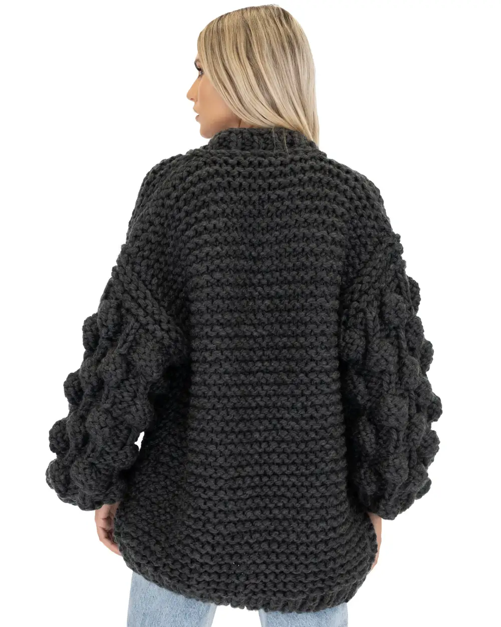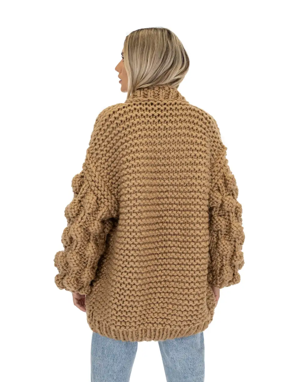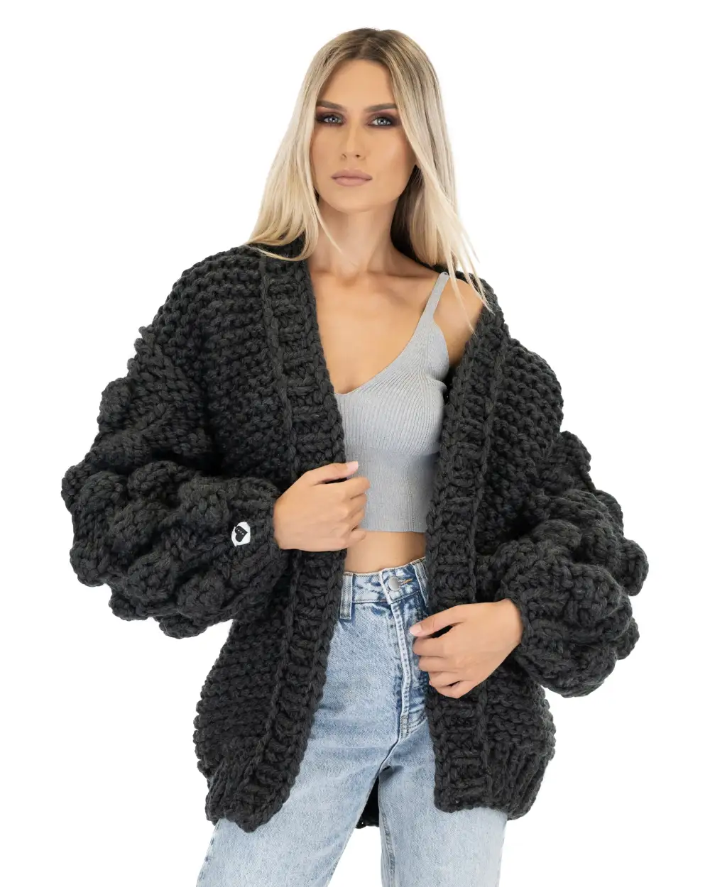 We are committed to quality and craftsmanship. Each cardigan is hand-knitted with care and attention to detail by skilled artisans, ensuring that every piece is unique. With its timeless style and exceptional quality, the "Bubble Sleeve Cardigan" is an investment signature piece that you will cherish for years to come.