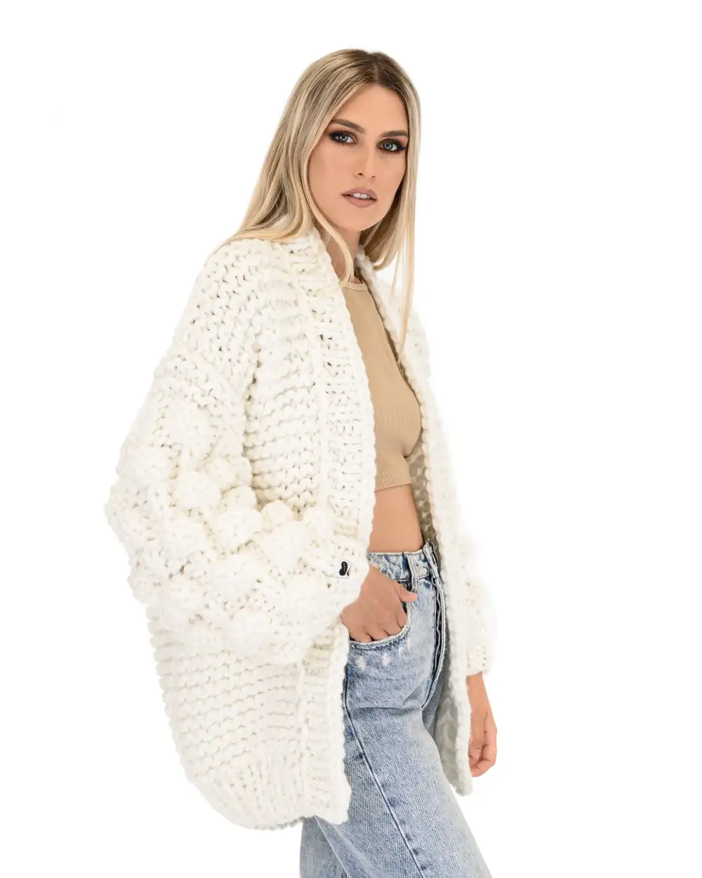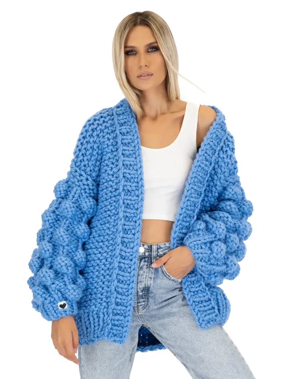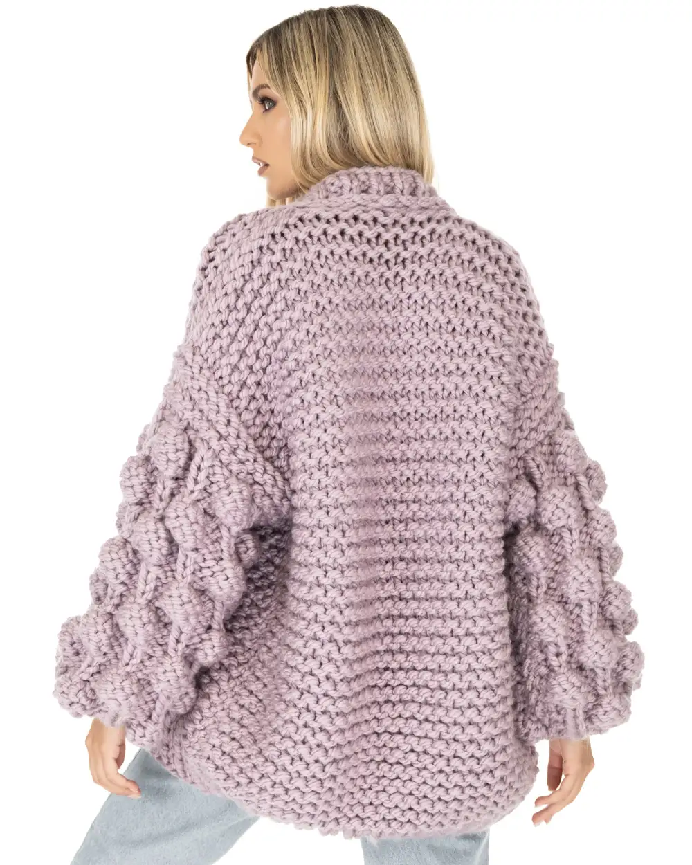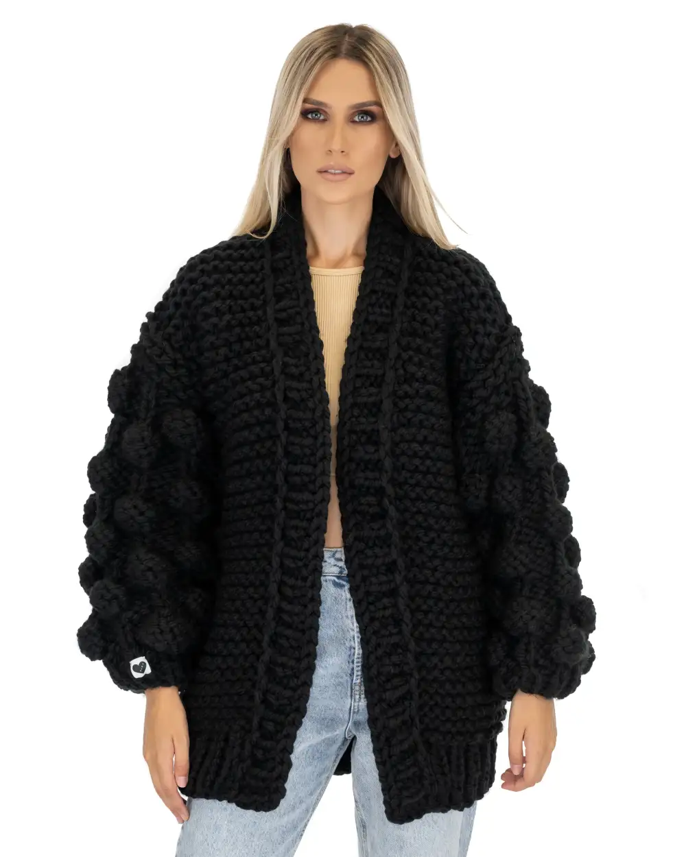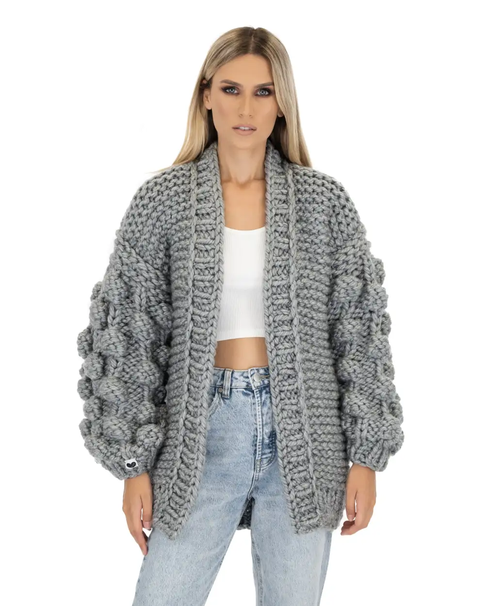 We are committed to quality and craftsmanship. Each cardigan is hand-knitted with care and attention to detail by skilled artisans, ensuring that every piece is unique. With its timeless style and exceptional quality, the "Bubble Sleeve Cardigan" is an investment signature piece that you will cherish for years to come.