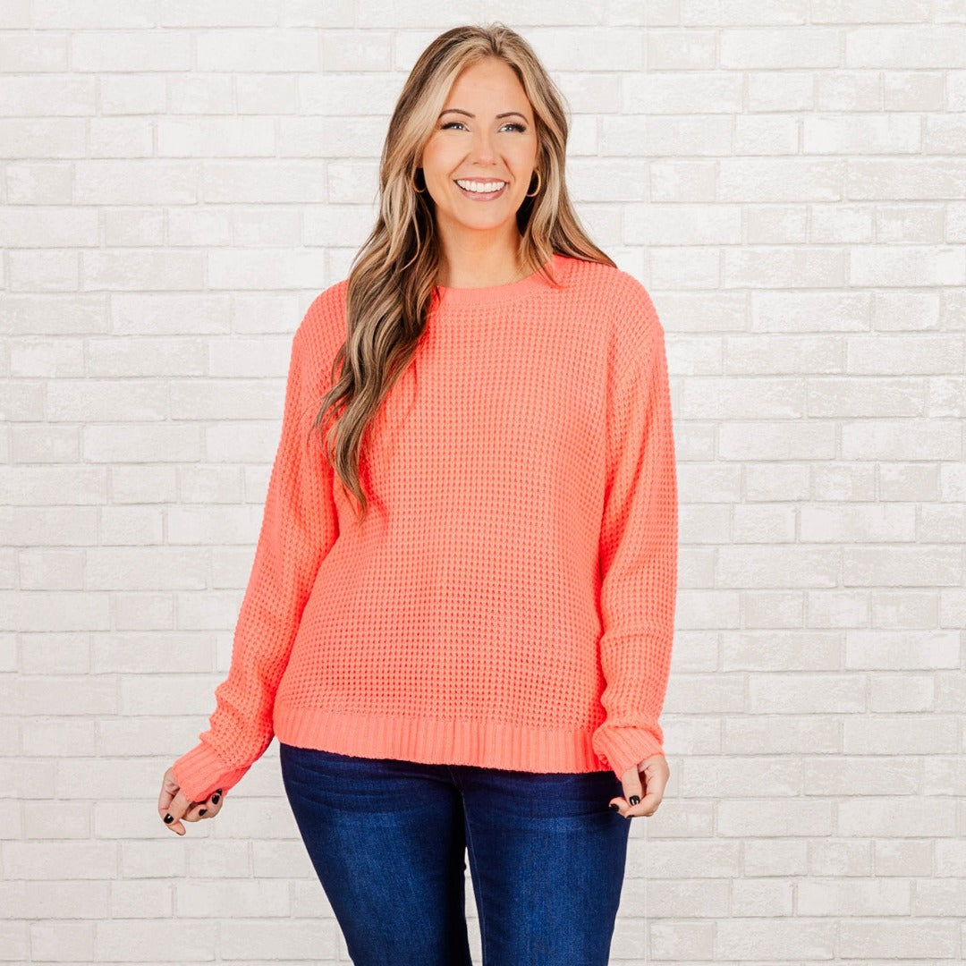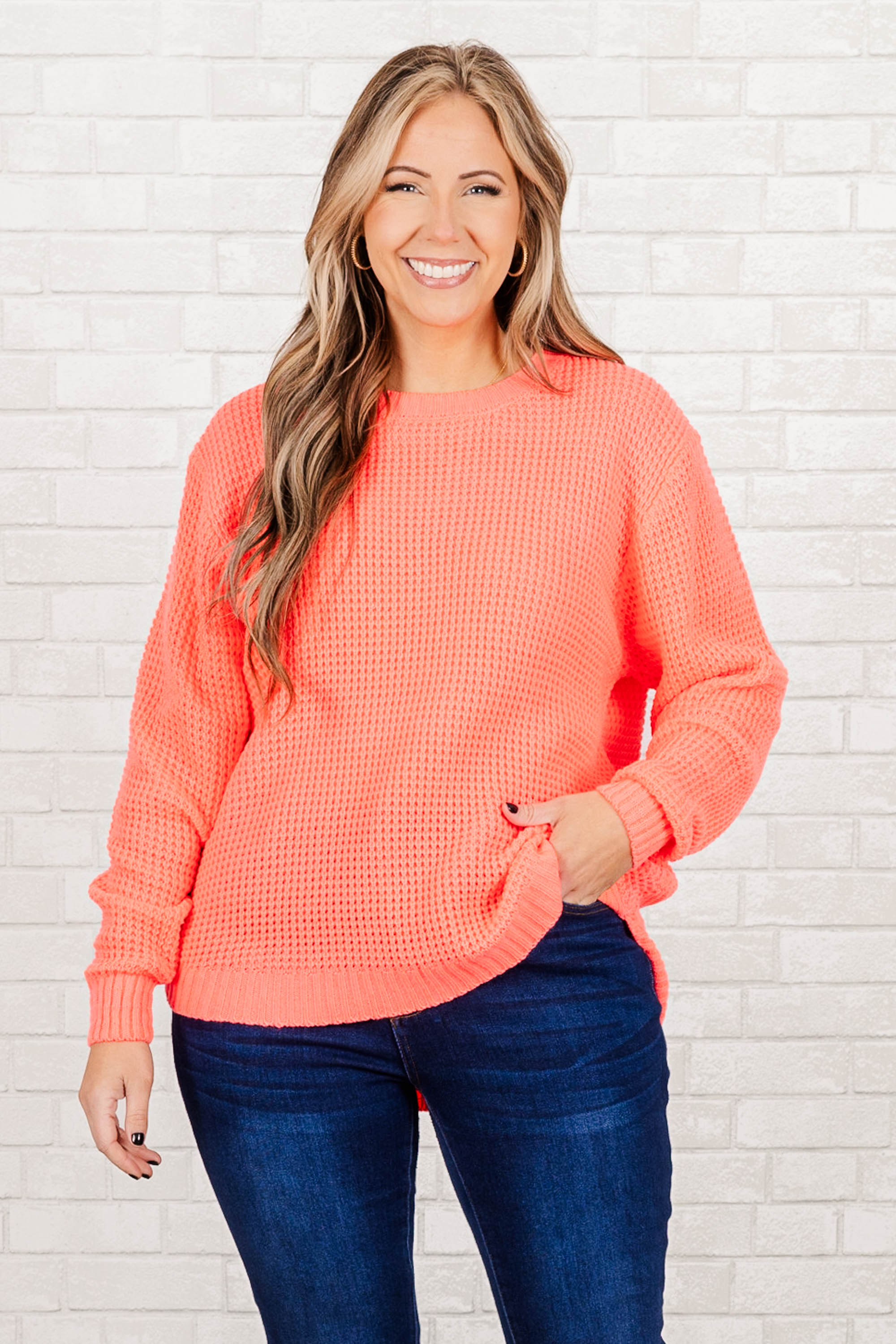 Call Me Tomorrow Sweater, Neon Coral Pink