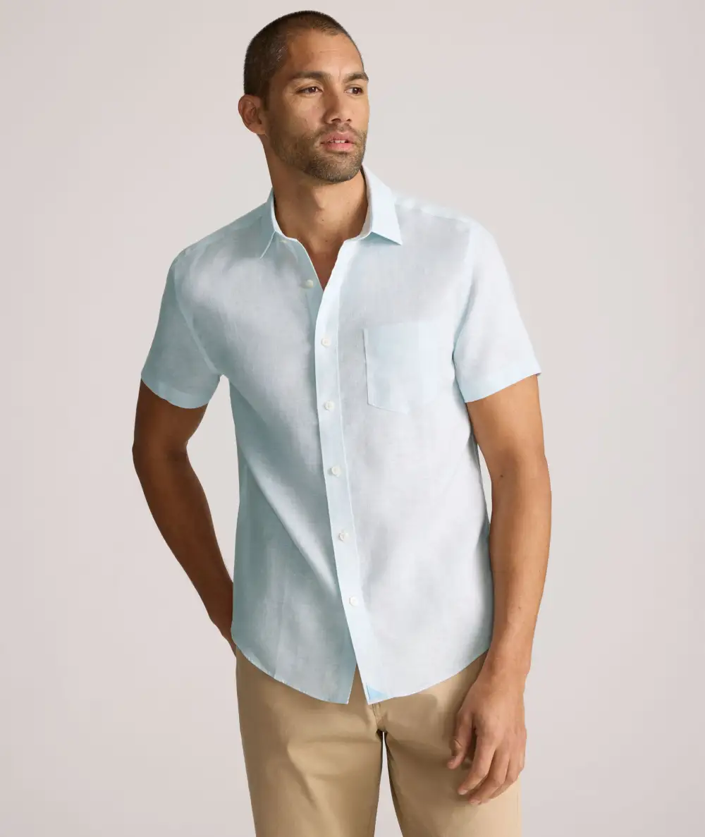 Stay cool when the weather warms up in this lightweight, 100% linen short-sleeve shirt. Unlike a traditional linen shirt, ours is designed to resist wrinkles better. It has the perfect-length hem and sleeves, making it a breezy style for a warm-weather hangout, backyard barbecue, or your next vacation. Wear it with our 5-Pocket Pants for an easy, laid-back spring look.