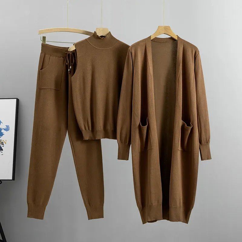 Casual knitted cardigan vest and pants three-piece set