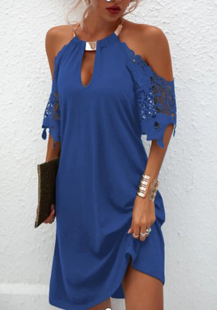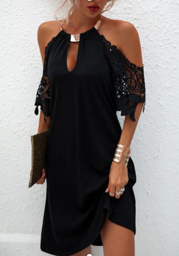 Newtown Metal Hanging Neck Hollow Out Sleeve Dress