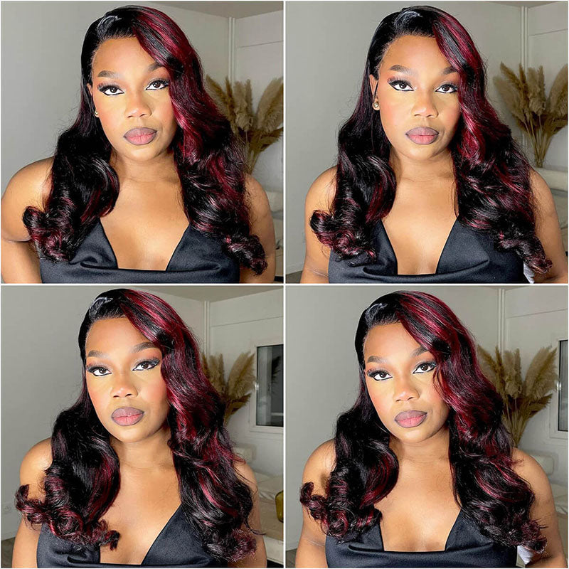 P1B/99J Balayage Highlight Wig Upgraded V Part Lace Wig No Leave Out Human Hair Wig