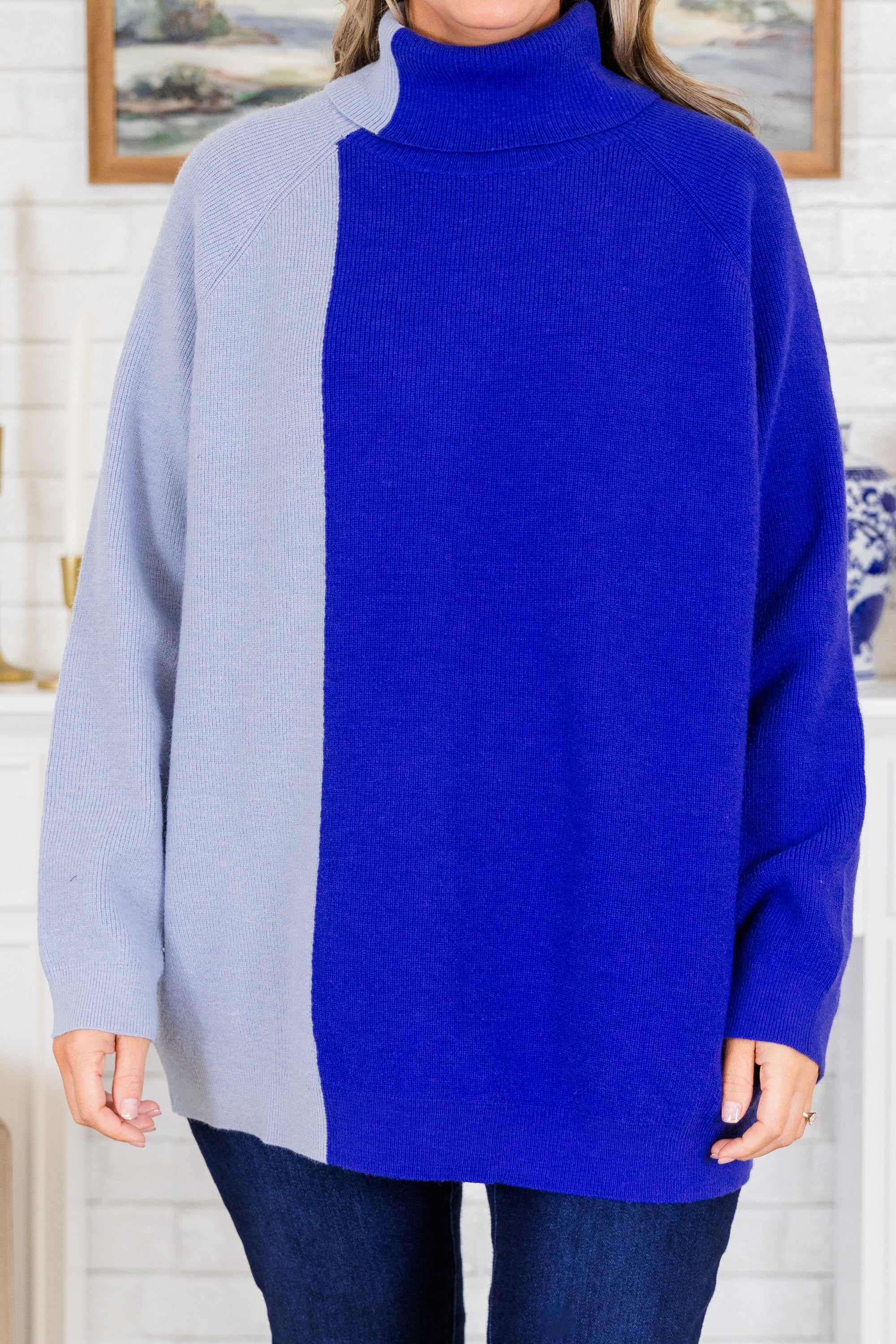 Get your chic on with our Chic Mindset Sweater in royal! This stylish and cozy color block turtleneck is the perfect addition to your winter wardrobe! Keep your mindset and your style on point with this one-of-a-kind sweater!