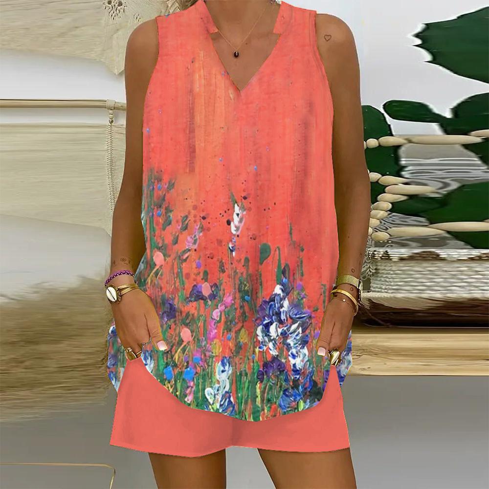 Groovy Sleeveless Print Two Piece Set