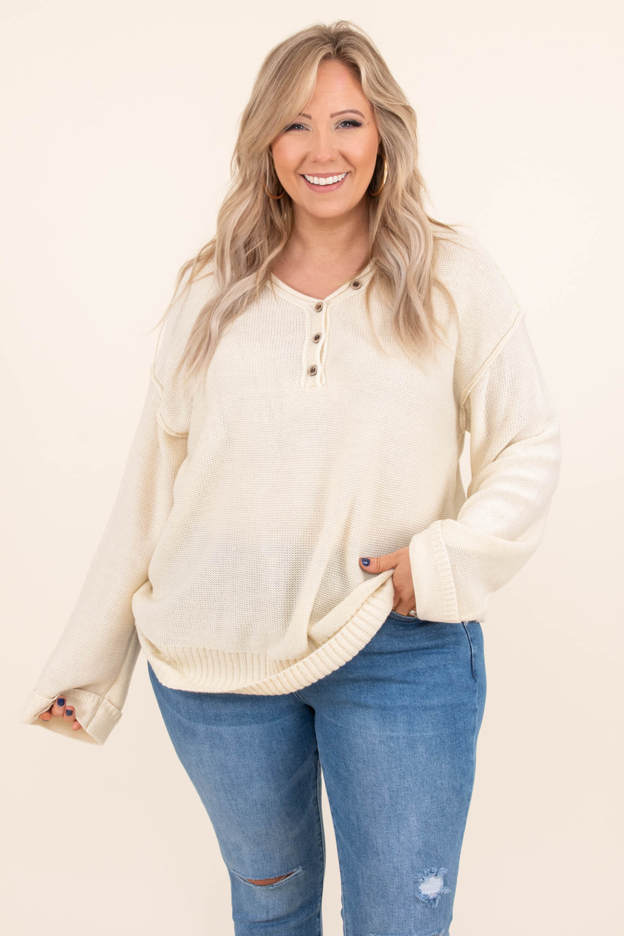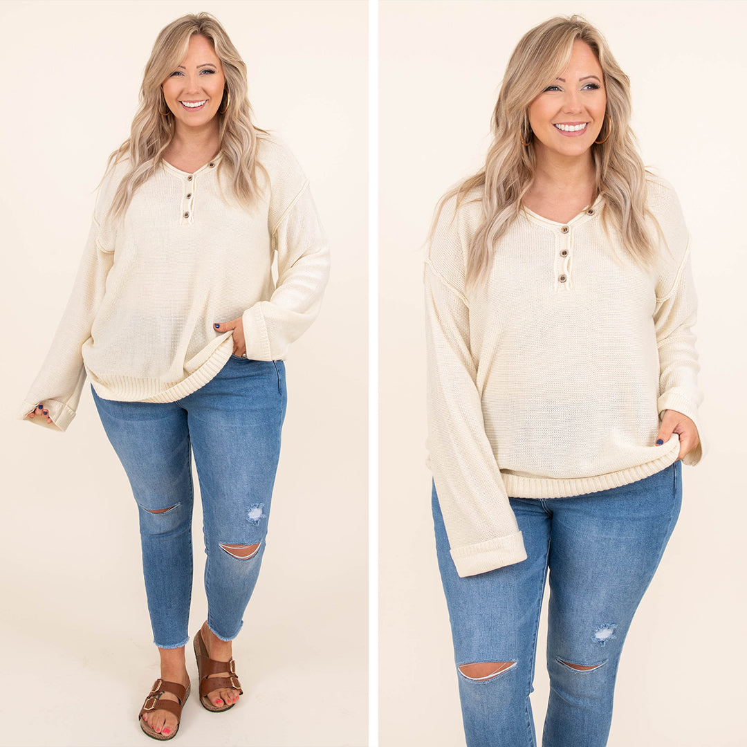 If you are feeling chilly on a hot day, slip this cutie on for instant coziness! This lightweight henley's neutral color can be paired with anything and the functional buttons are so stylish! We are especially loving the cuffed sleeves! Pair this babe with some skinnies and sandals for an easy, chic look!
