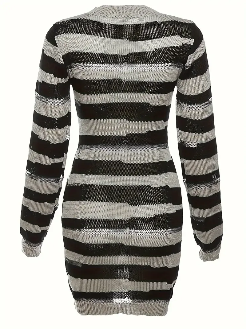 Color Block Long Sleeve Knit Dress, Casual Crew Neck Dress For Spring & Fall, Women's Clothing