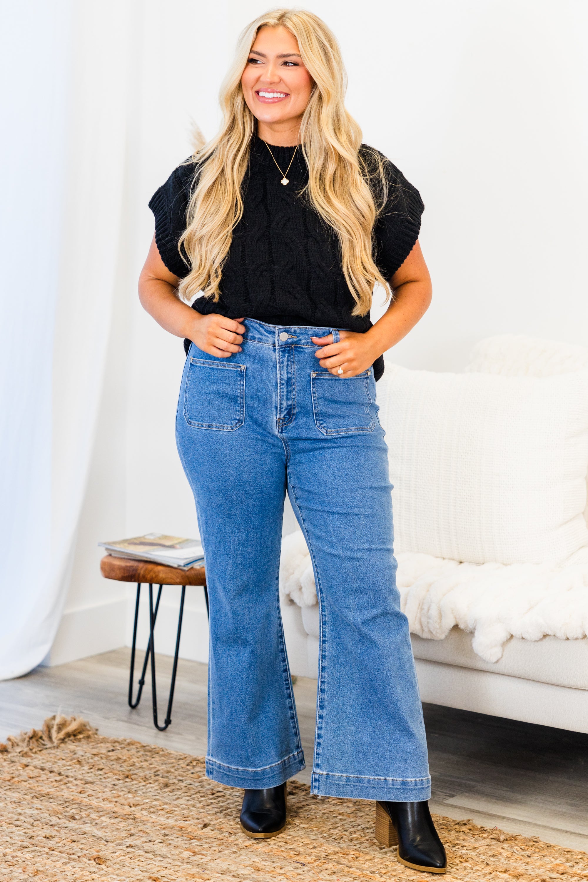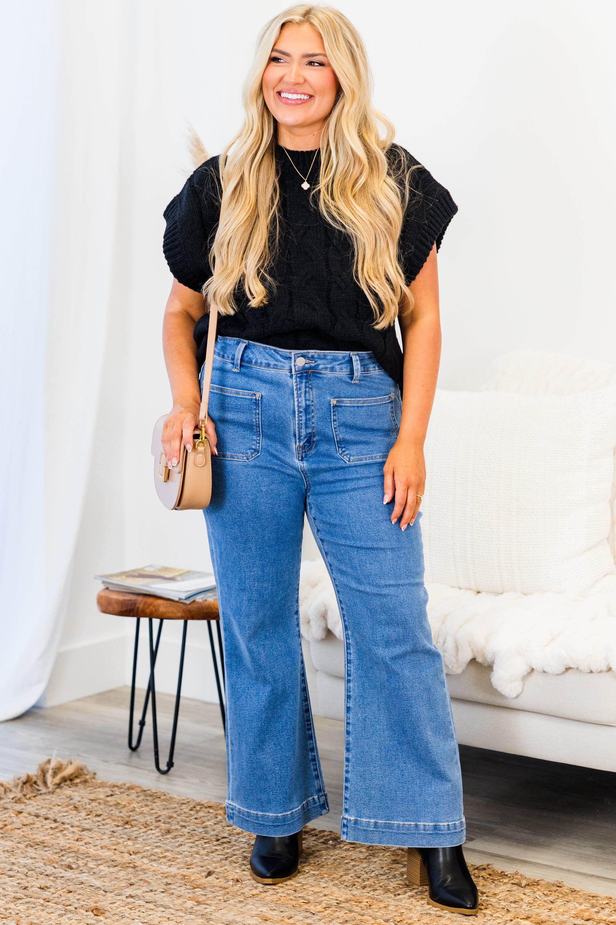 Stay cool and stylish with our trendy black short sleeve cable knit sweater! Made with a round neckline and designed to keep you comfortable, this sweater is the perfect addition to your wardrobe. Whether you're lounging at home or out for a night on the town, this is the perfect staple to your wardrobe!