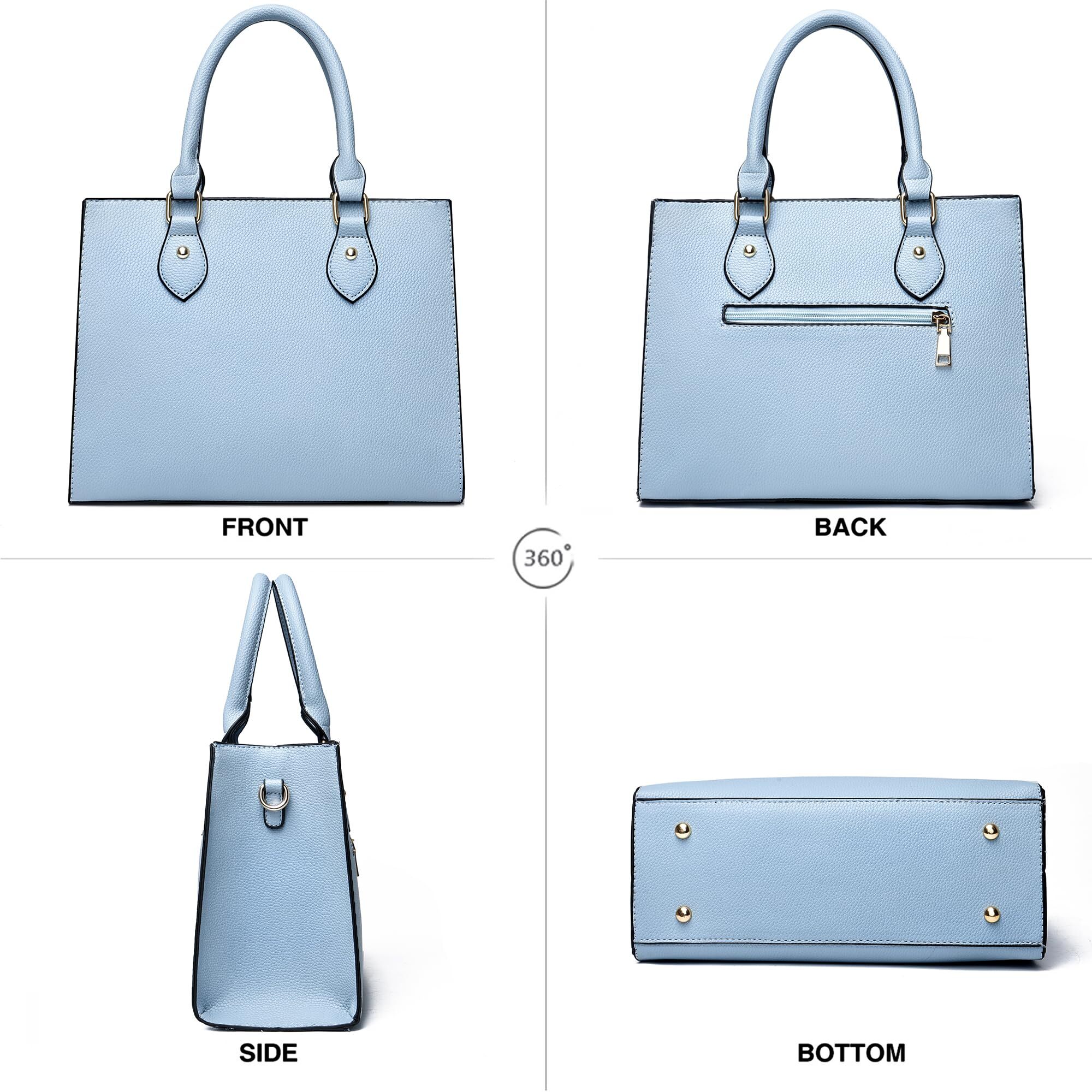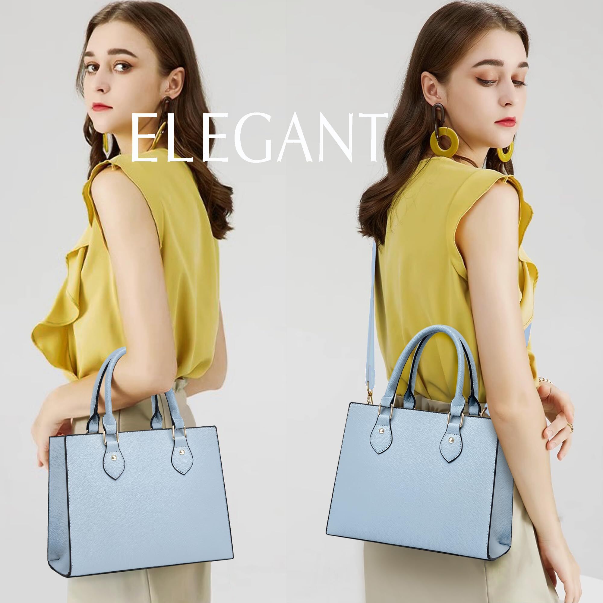 【PERFECT GIFT】With fashion design and great quality, this handbag will be the perfect gift for your wife, mom, girls, and family. Rich and beautiful colors for you to choose, classical black, cute pink, stylish pale blue, cool navy blue, normal brown, beautiful khaki, charming purple, hot red, adorable yellow. What are you waiting for 【FUNCTIONAL】The purse can hold your iPad, wallet, makeups, phone, little water bottle, perfumes, gloves and other your everyday items and keep them organized . Perfect for dating,shopping,working,traveling, vocation, party and other occasions 【WELL MADE】 Well made of high quality synthetic leather (no any animal part at all) with durable gold hardware. Detailed stitching with smoothly zippers. Notes ---- Open it and put it in a ventilated environment for few days if it have PU smell. 【DETAILS】Top Handle Tote Bag: 12"L x 5.2"D x 9"H, Handle Height: 5.2"D , Handbag weight: 1.5lb. This purse has a long adjustable and removable strap to be a crossbody bag or shoulder bag.Top zipper closure. Two interior compartments,interior two zippered pocket and two slip pockets,exterior back pockets 【NOTE】We are committed to providing each customer with the highest standard of customer service and top quality goods, if you are not satisfied with our product or service for any reason, we will help you to solve problem within 1 workday. Have a beautiful day!