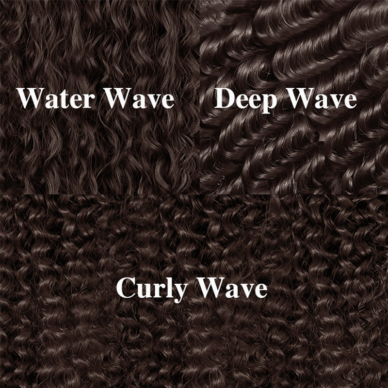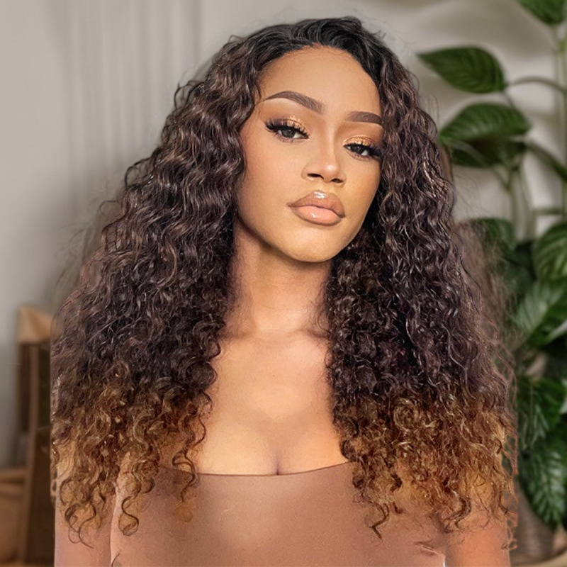 • Dark Brown with Chestnut Brown Highlights Water Wave Wig 5x5/13x6 Light Brown Highlights 180% Density Wig