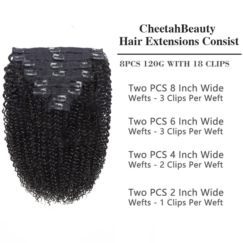 • Double Drawn 3c/4a Curly Wave Clip In Hair Extensions Human Hair Clip Ins 120g 8pcs With 18 Clips