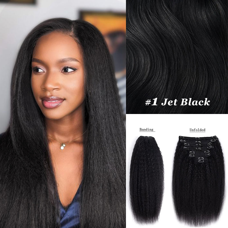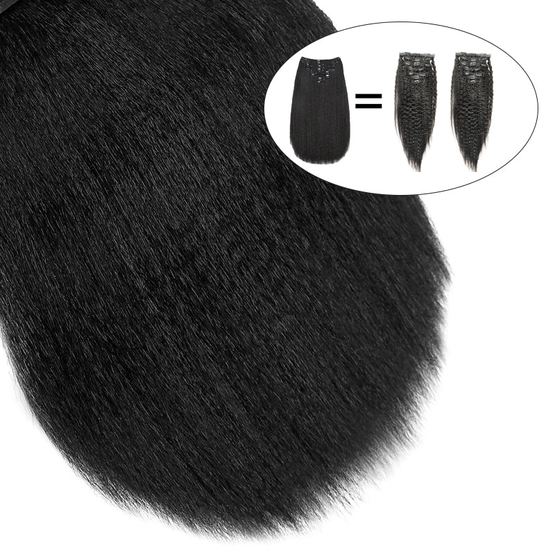 • Double Drawn Kinky Straight Clip In Hair Extensions Human Hair Clip Ins 120g 8pcs With 18 Clips