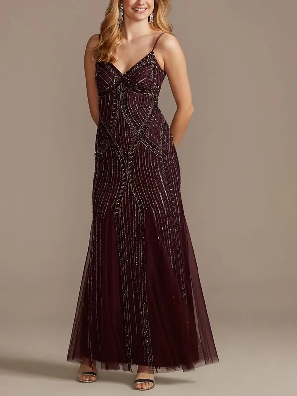 embroidered spaghetti strap bridesmaid dress