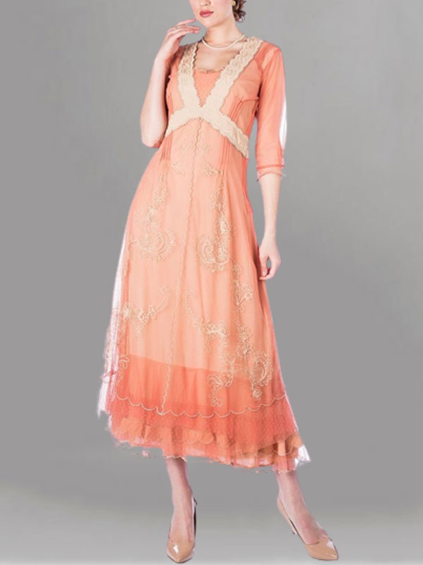 Embroidery vintage court style simple tulle ladies dress