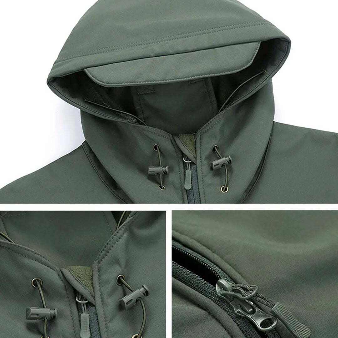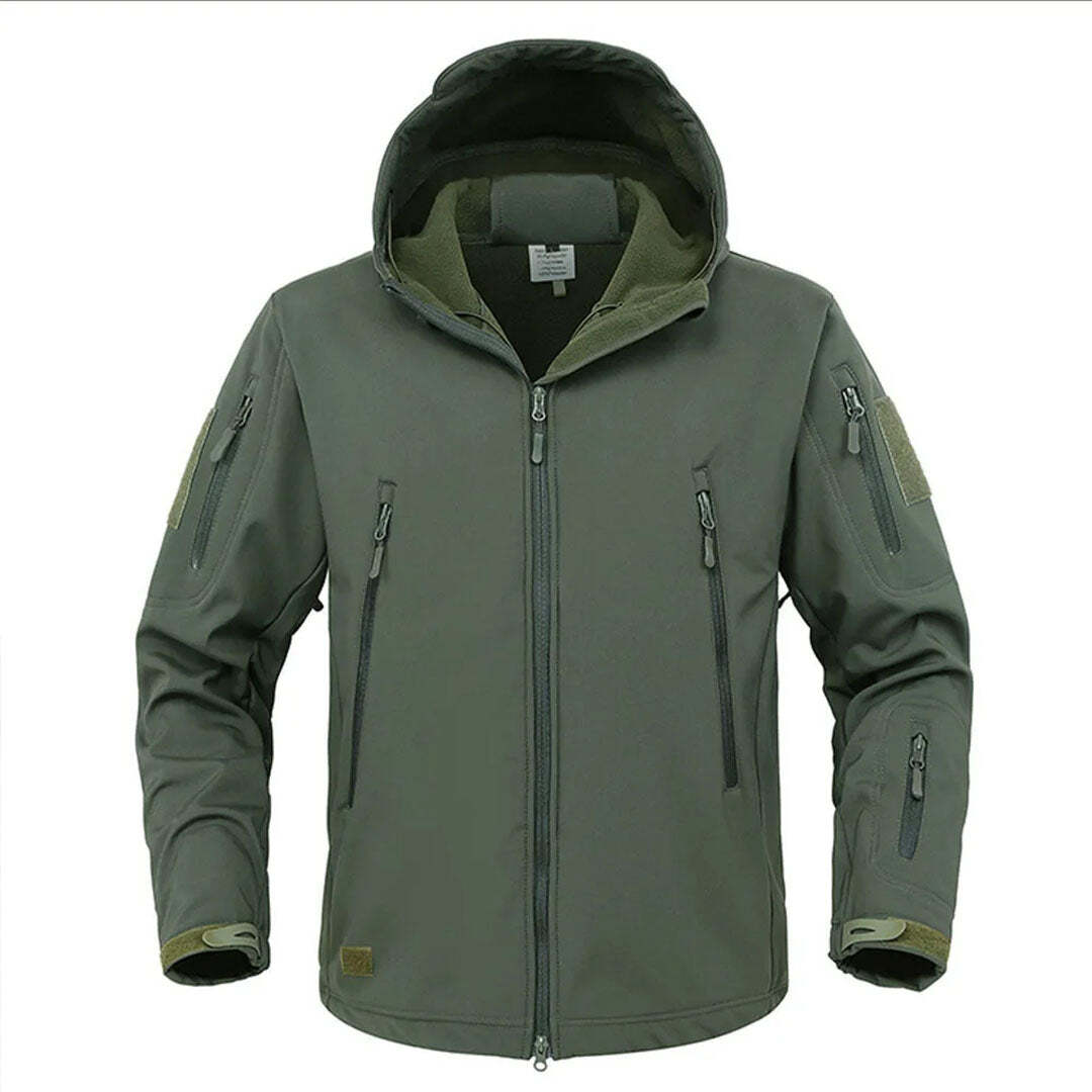Introducing the Explorer Jacket, designed for ultimate outdoor resilience. This military-inspired jacket combines "Shark Skin" soft shell technology with superior windproof and waterproof protection, ensuring you're equipped for any condition. Featuring a hooded bomber design, it offers both tactical efficiency and style. Built for the adventurous, the Explorer Jacket is your shield against the elements, seamlessly blending functionality with a rugged aesthetic. Gear up with and conquer the outdoors.