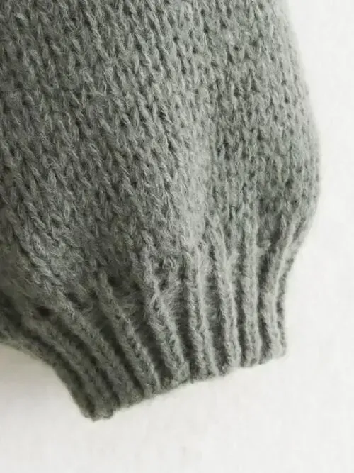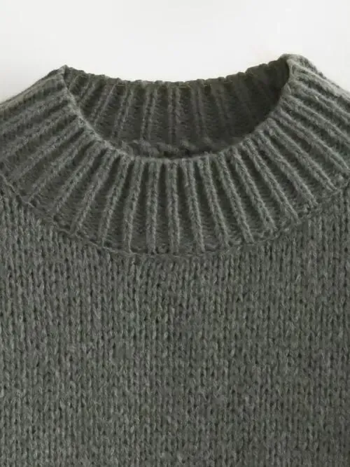 The exposed seam detailing on the shoulders and sleeves adds a unique touch to the classic design. The round neck and long sleeves provide warmth and coverage, making this sweater a great choice for both casual and dressy occasions.