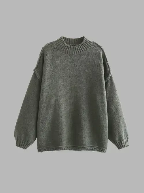 Exposed Seam Round Neck Long Sleeve Sweater AC