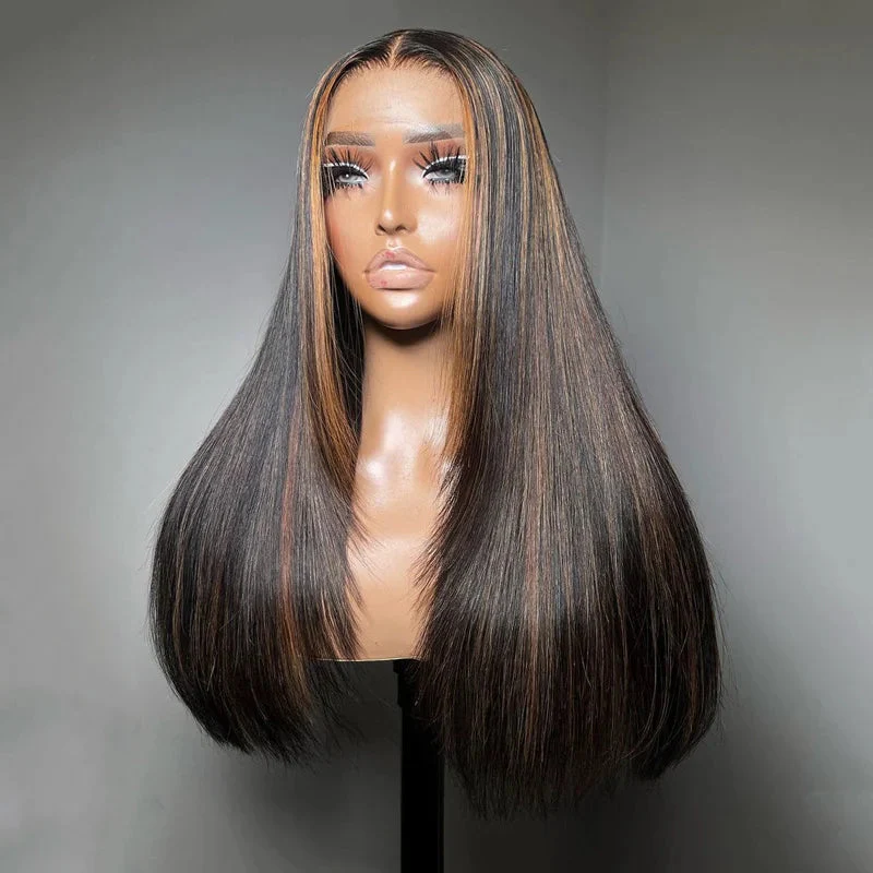 FB30 Balayage Raw Hair Super Double Drawn Layered 13×6 Straight Human Hair Wigs 250% Density