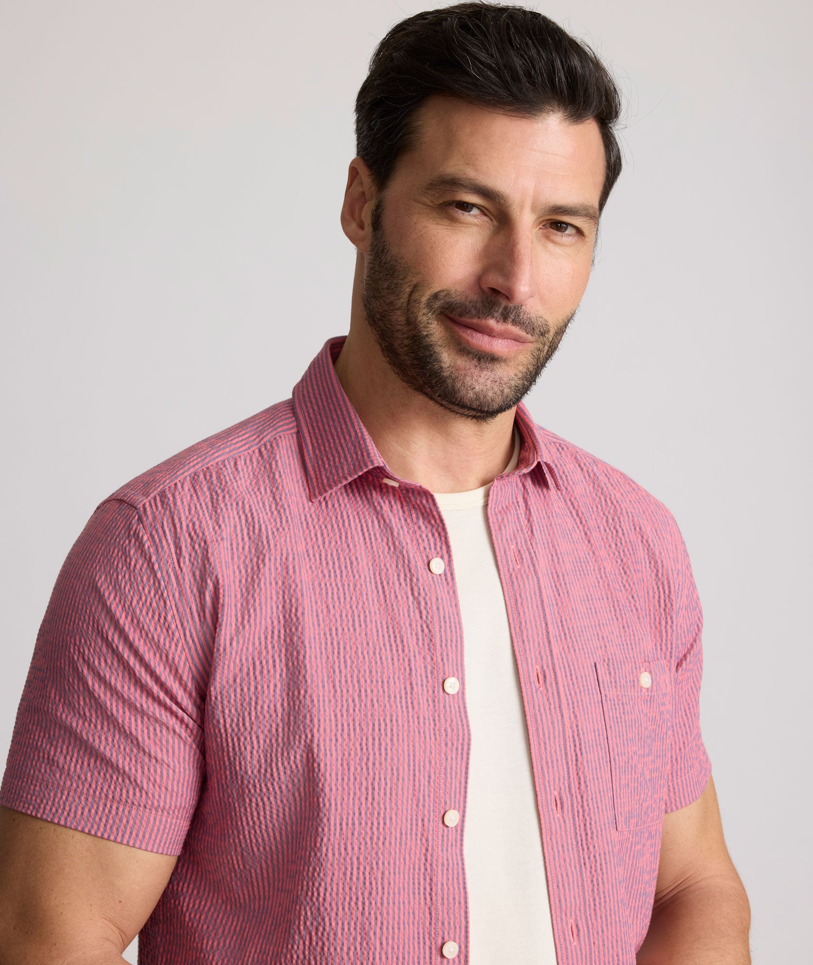 We’ve totally reinvented the seersucker shirt by infusing it with our best Performance attributes, like sweat wicking and stretch. It’s an instant classic that still has the timeless texture in crisp cotton you love—along with next-level comfort—making it the ultimate spring-to-summer style. Wear it with our water-repellent Traveler Tech Pants for a laid-back yet polished look that’ll feel great wherever you’re headed this season.