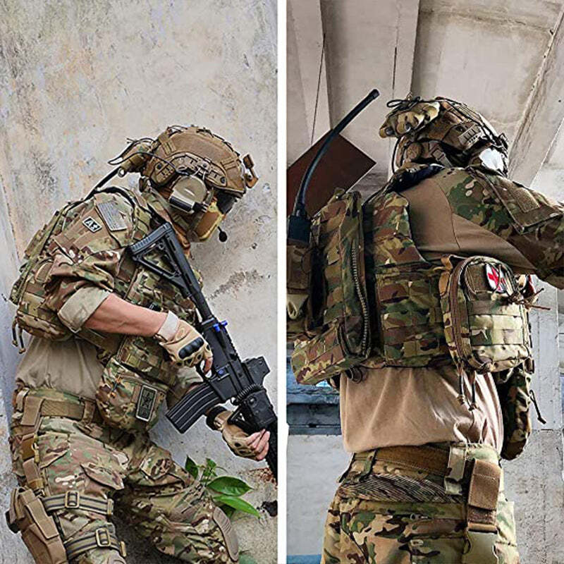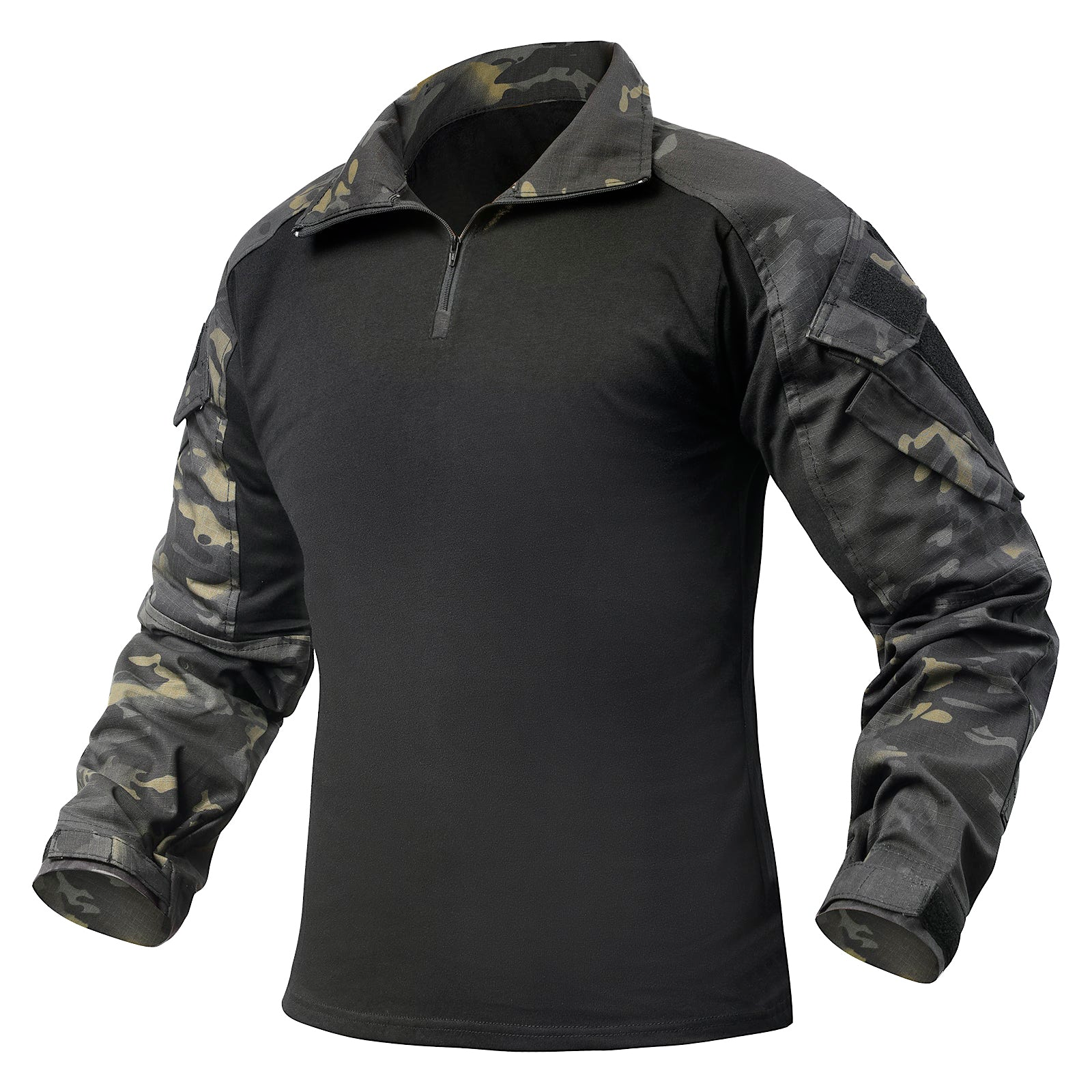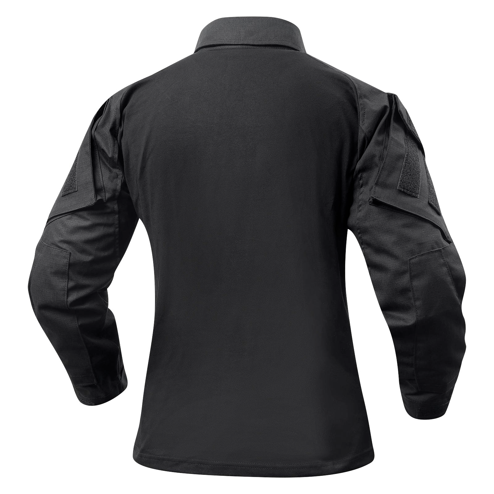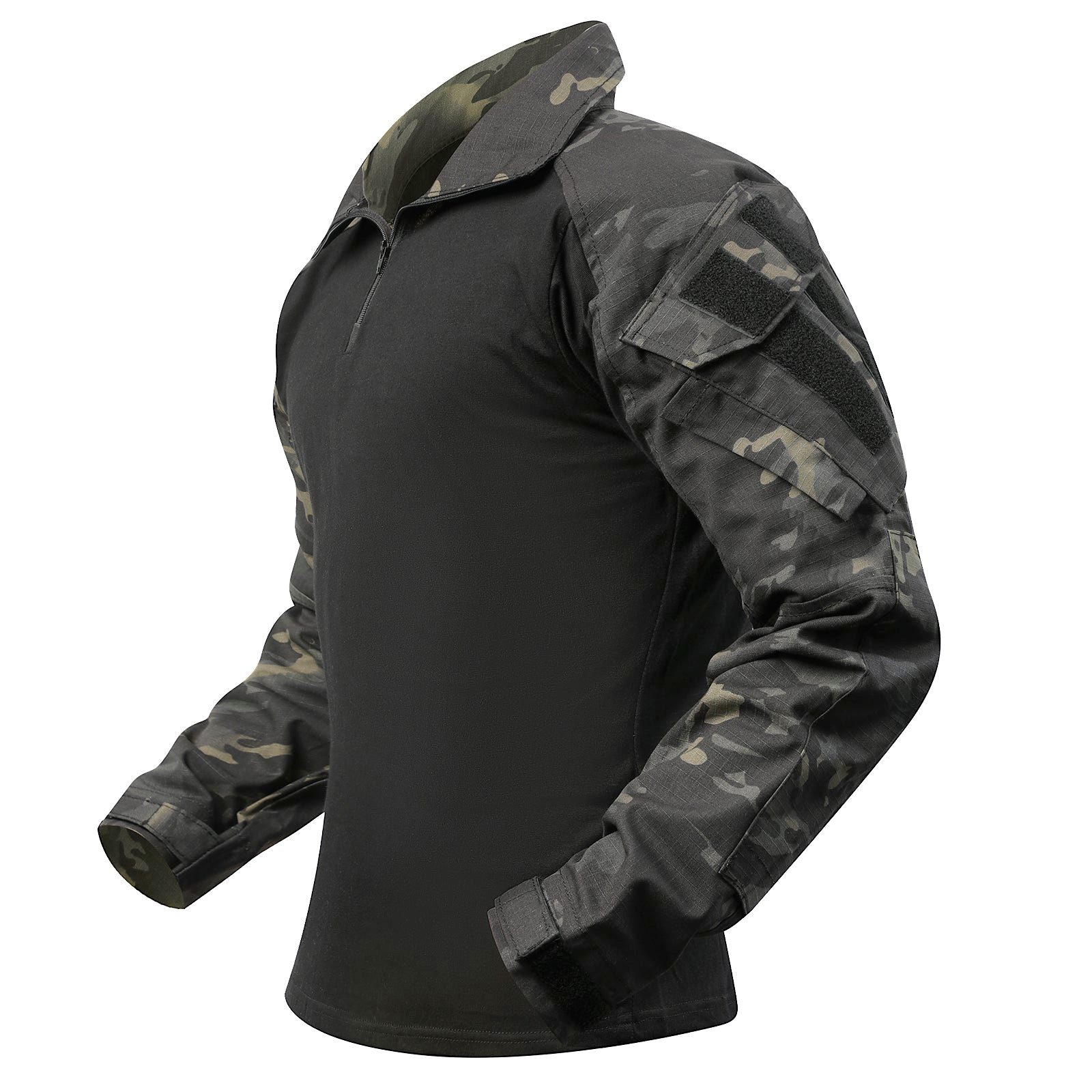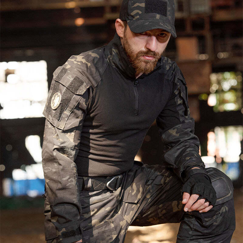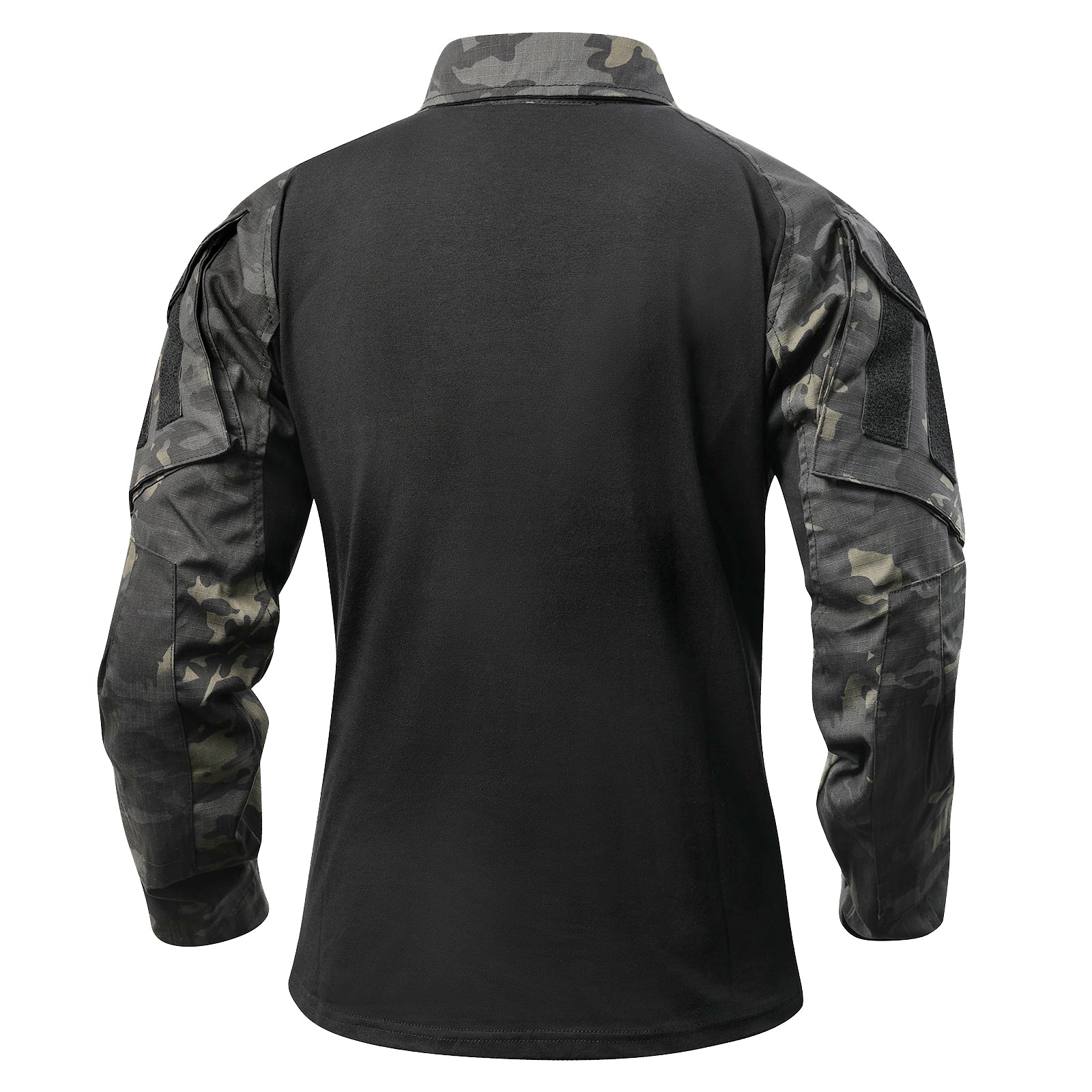 This professional G3 combat shirt in MultiCam is designed to minimize visual and IR signature. Featuring large storage pockets on each arm, these pockets come equipped with substantial Velcro areas for attaching various badges such as team logos, national flags, or blood type badges. The sleeves are designed with concealed elbow pads for added protection. The Velcro tape on the cuffs allows for size adjustment, providing both functionality and customization options for the wearer.