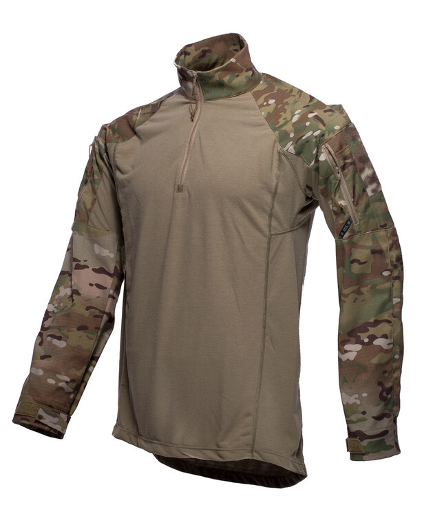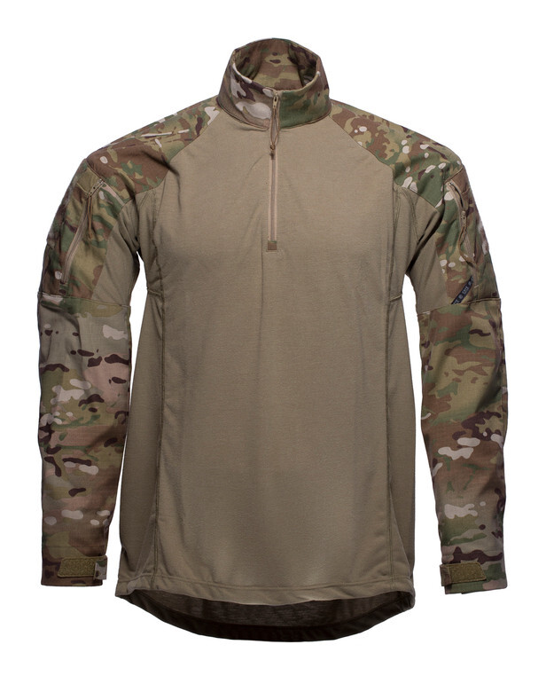The next generation of Combat Apparel features innovative, custom stretch VTX RIPSTOP fabric. Torso constructed with lightweight, high performance, flame-resistant jersey fabric. Invista’s T420 high tenacity nylon fiber makes it lighter and stronger in the sleeves. Designed to be worn under body armor, the integrated stretch allows for a slimmer cut with maximum mobility. Zippered shoulder pockets are low profile and engineered to reduce bulk while still allowing room for all essential gear.