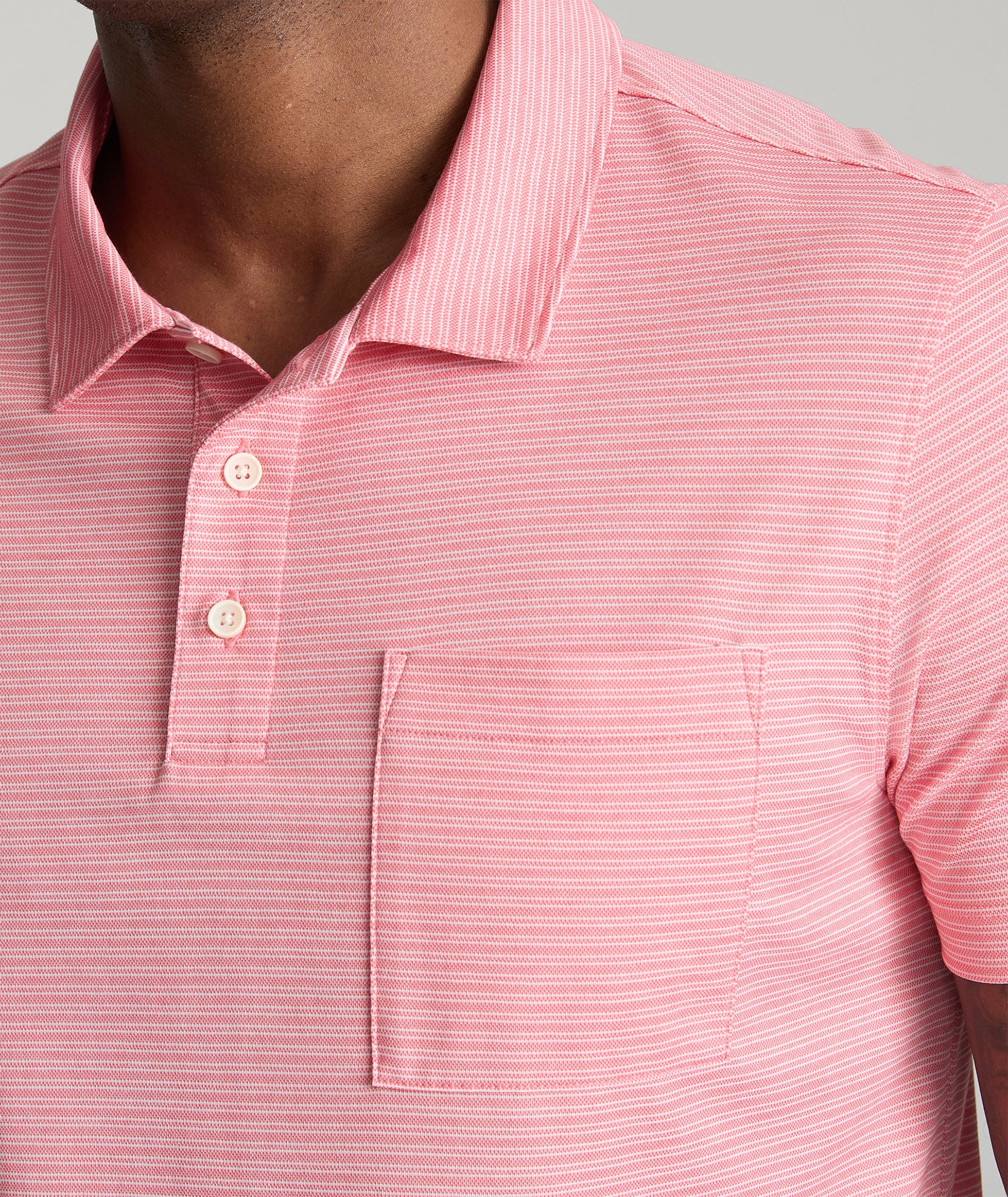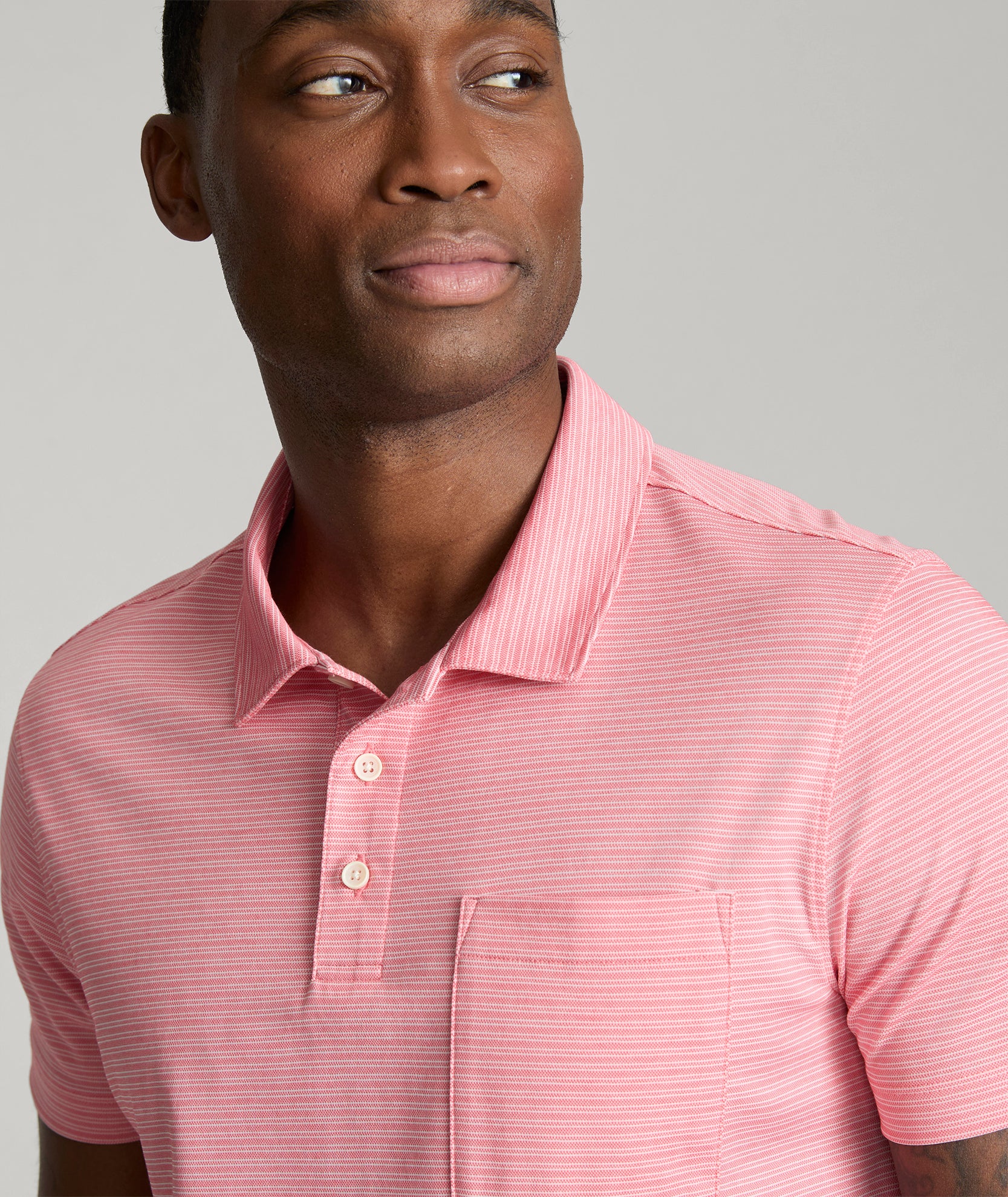Meet our all-in-one Performance Polos. They're great for golfing, hiking, chilling on the beach, killing it at the office—you know, the usual. The sweat-wicking technology is designed to keep you cool and dry on the go no matter what, and the fabric has plenty of stretch so you can be comfortable and look sharp without even trying. Plus, a subtle striped pattern sets you apart from the crowd.