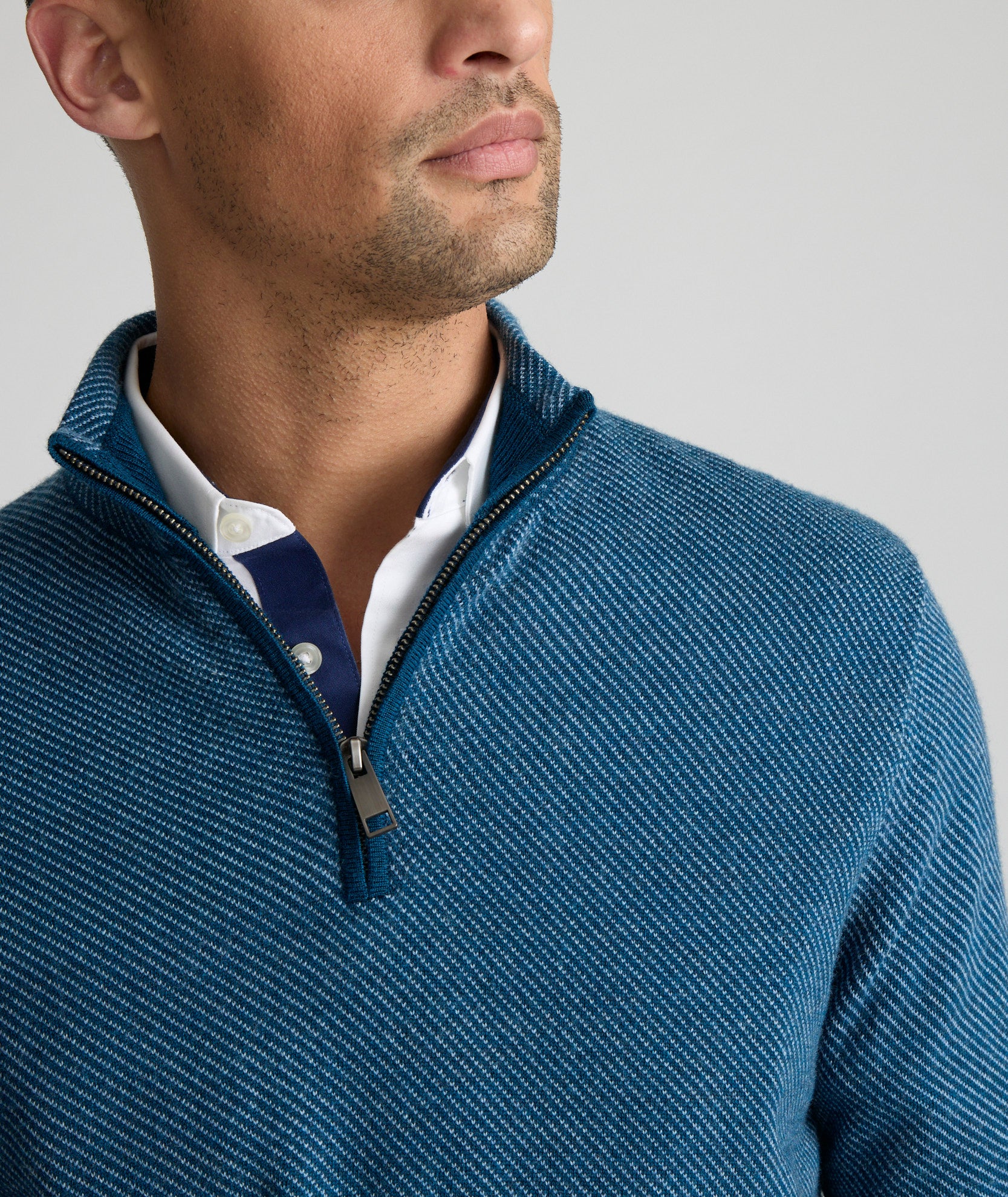 When the season turns chilly, you need one of our bestselling sweaters to stay warm and look sharp. Made from 100% breathable wool, this quarter-zip sweater naturally regulates your body temperature so you won't overheat. The mock collar, easy zipper, and sharp give it an elevated style that still feels laid-back. Pair it with your favorite Wrinkle-Free button-down and our comfortable Classic Chino Pants for an easy look this season.
