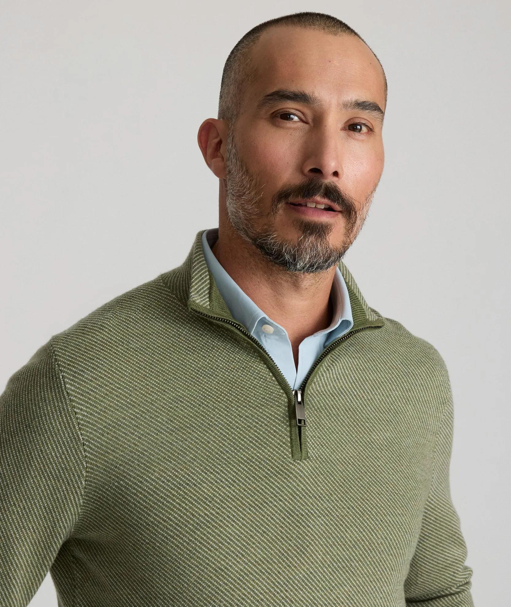 Twill Merino Wool Quarter-Zip Sweater
