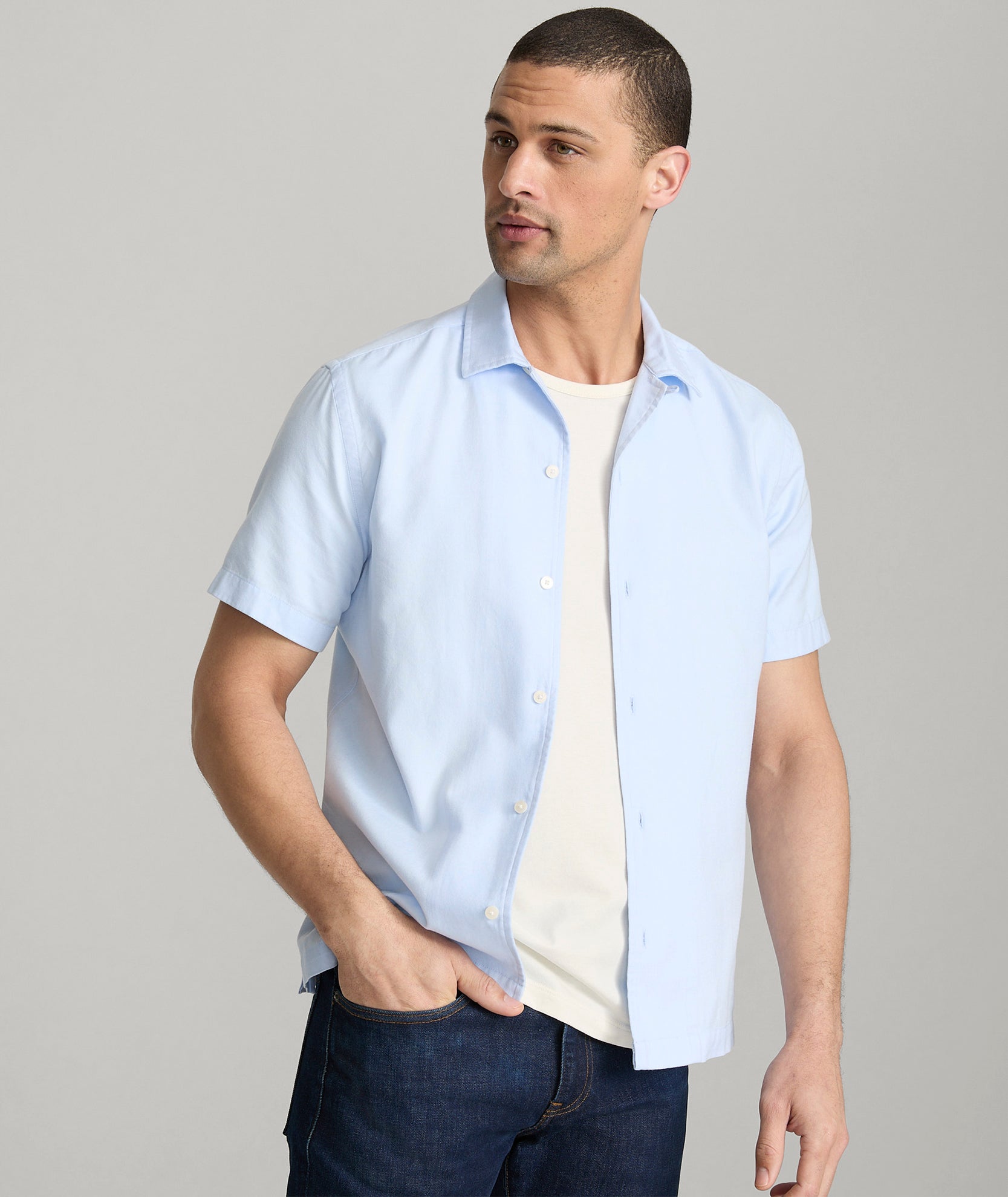 Headed for warmer weather? You’ll look and feel great in this cool, comfortable short-sleeve button-down. We used a blend of cotton and TENCEL™ Lyocell, a lightweight fabric derived from natural raw material wood, for softness you can feel. It’s a breathable favorite you’ll never want to take off. Plus, it's cut to the perfect untucked length and the stay-put collar keeps its shape all day, so you'll look and feel fresh all spring long.