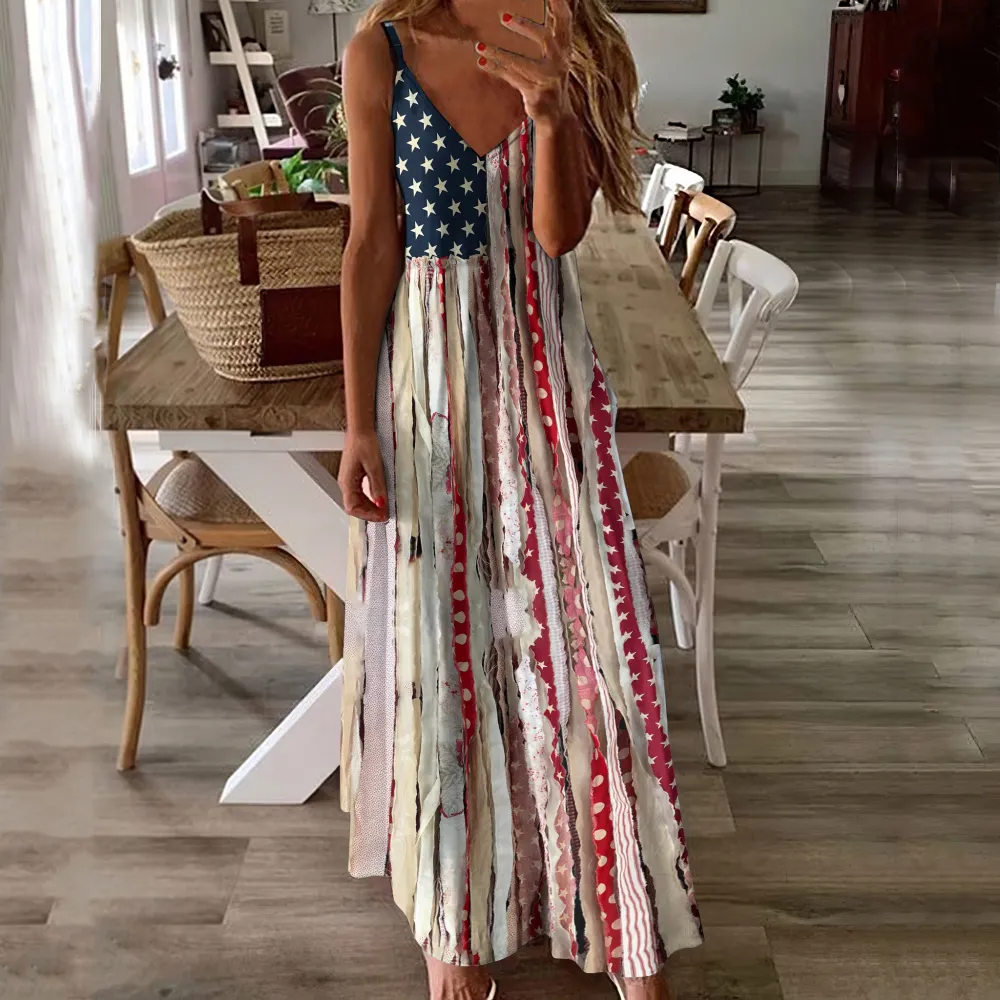 Independence Day Western Tassel Print Slip Maxi Dress