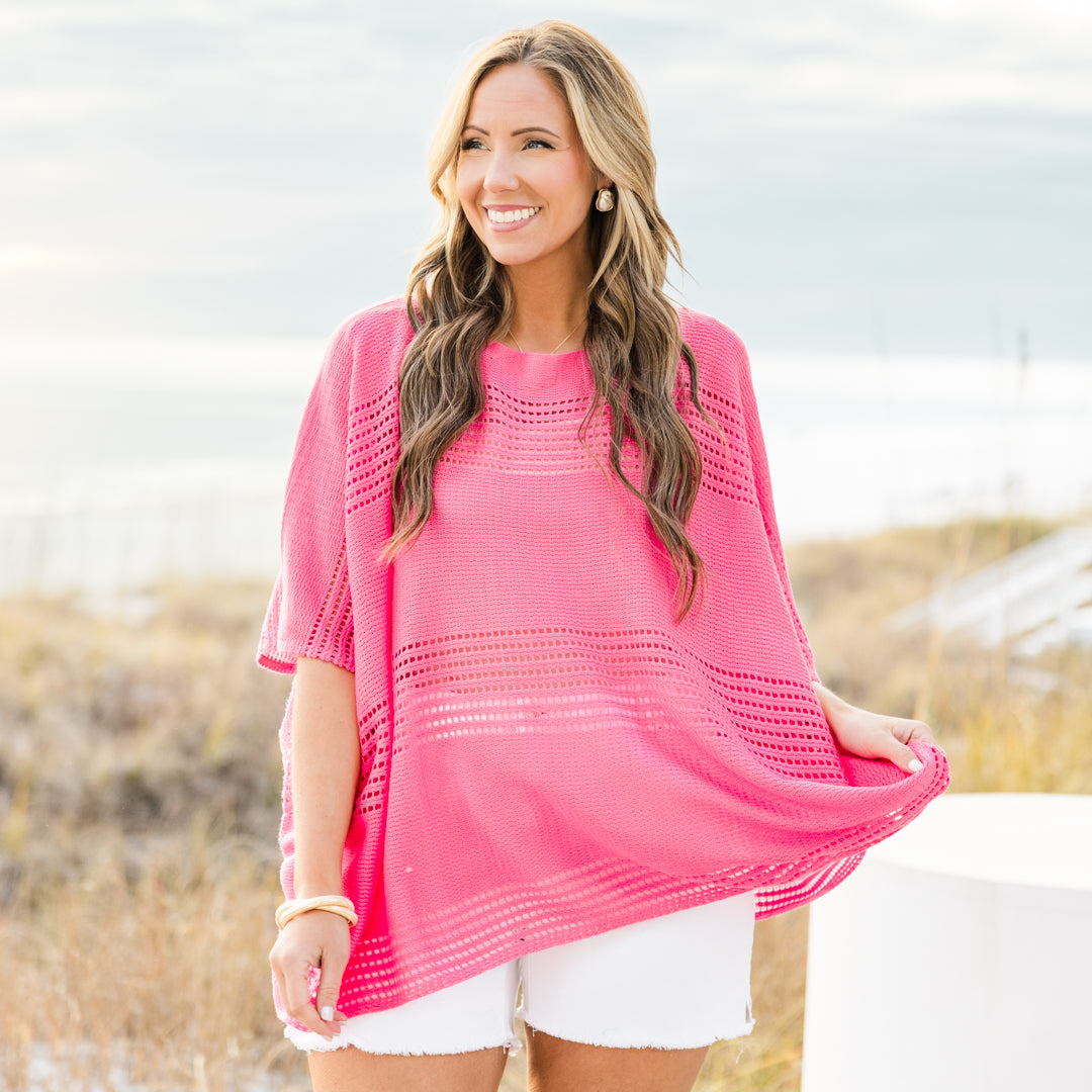 Elevate your wardrobe with the It's The Standard Sweater in hot pink! This lightweight short sleeve knit sweater is perfect for layering over your favorite camisole for a stylish and versatile look! Complete with a playful pop of color, this sweater is a must-have for any fashion-forward individual!