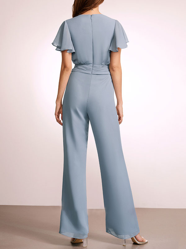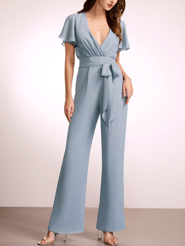Jumpsuit/Pantsuit V-Neck Floor-Length Chiffon Bridesmaid Dress With Ruffle