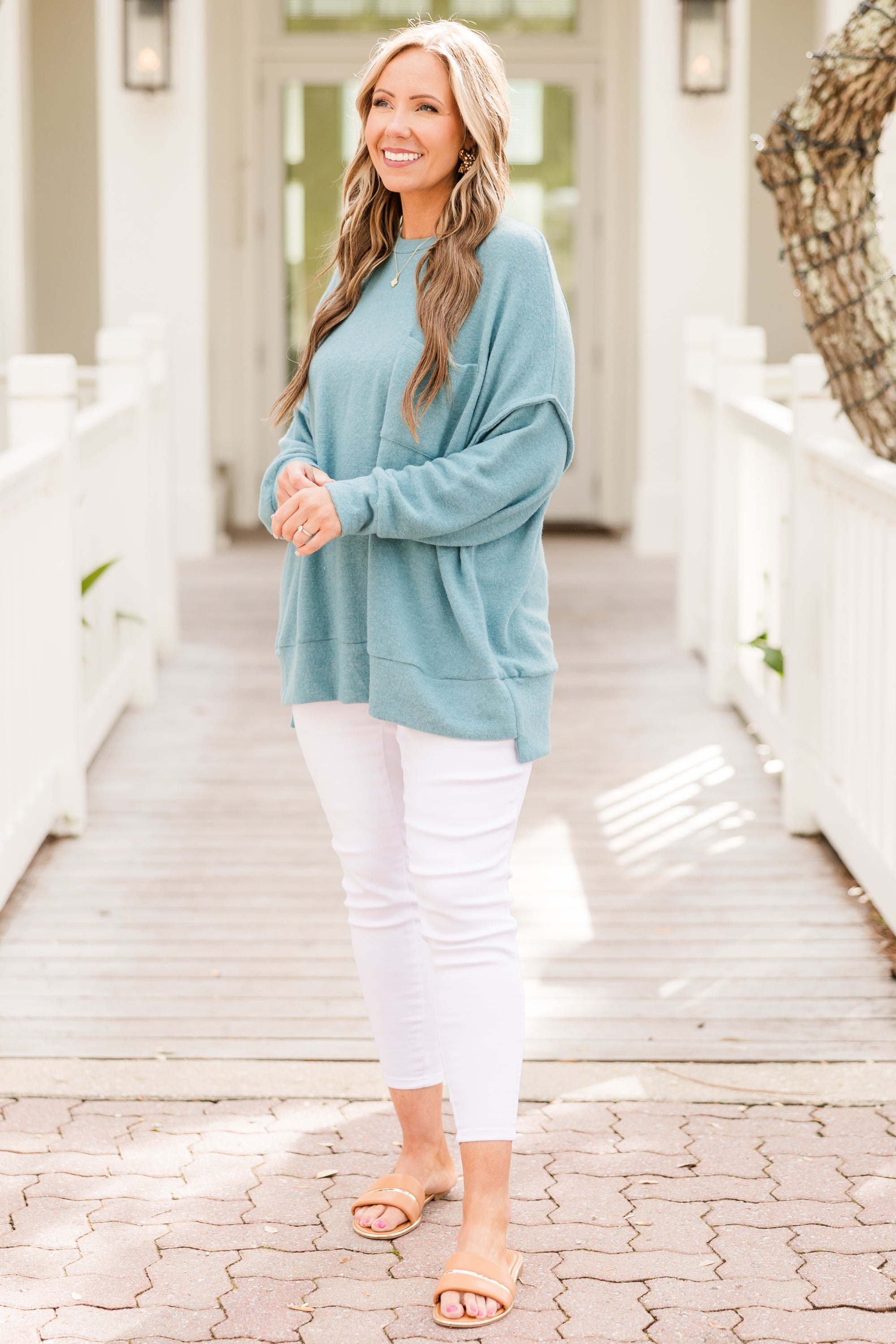 Just Take A Break Sweater, Dusty Teal