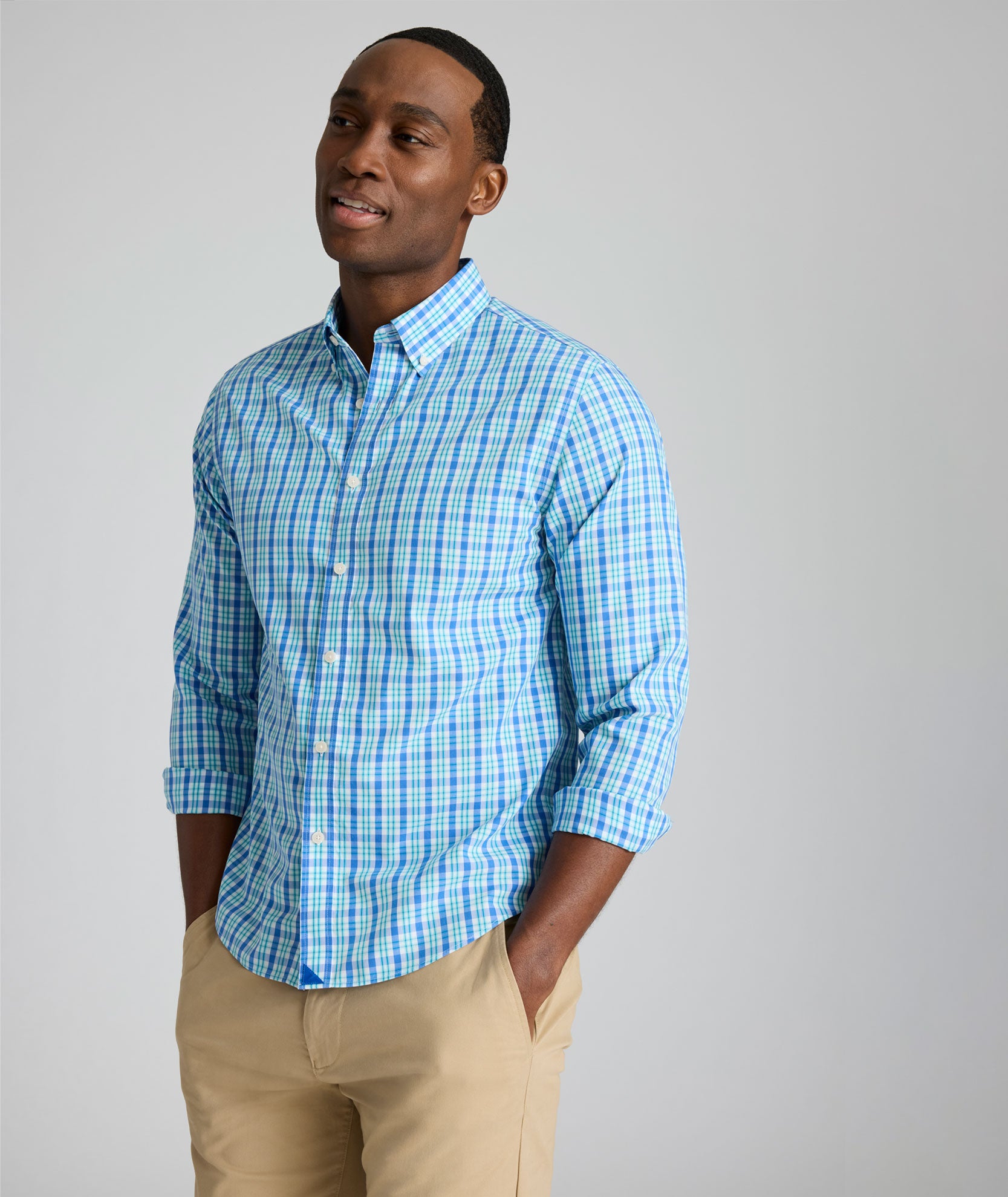 Who has time to iron? We make our Wrinkle-Free Shirts from 100% cotton with a heat-activated finish that helps them resist wrinkles all day long. They come out of the dryer ready to wear, so they’re great for when you're in a rush but still need to look your best. This style has the perfect untucked length, a polished button-down collar, and fits for all shapes and sizes so everyone can look sharp and feel comfortable. Wear this classic check patterned shirt with a pair of easy Saturday Tech Pants for a timeless look this summer and beyond.