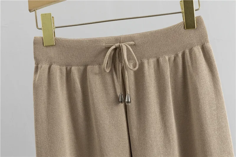 Knitted cardigan jacket and suspender wide-leg pants three-piece set